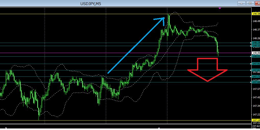 時間帯がレアな時間帯ですので、ここでは、値動きのみについて説明いたします。
