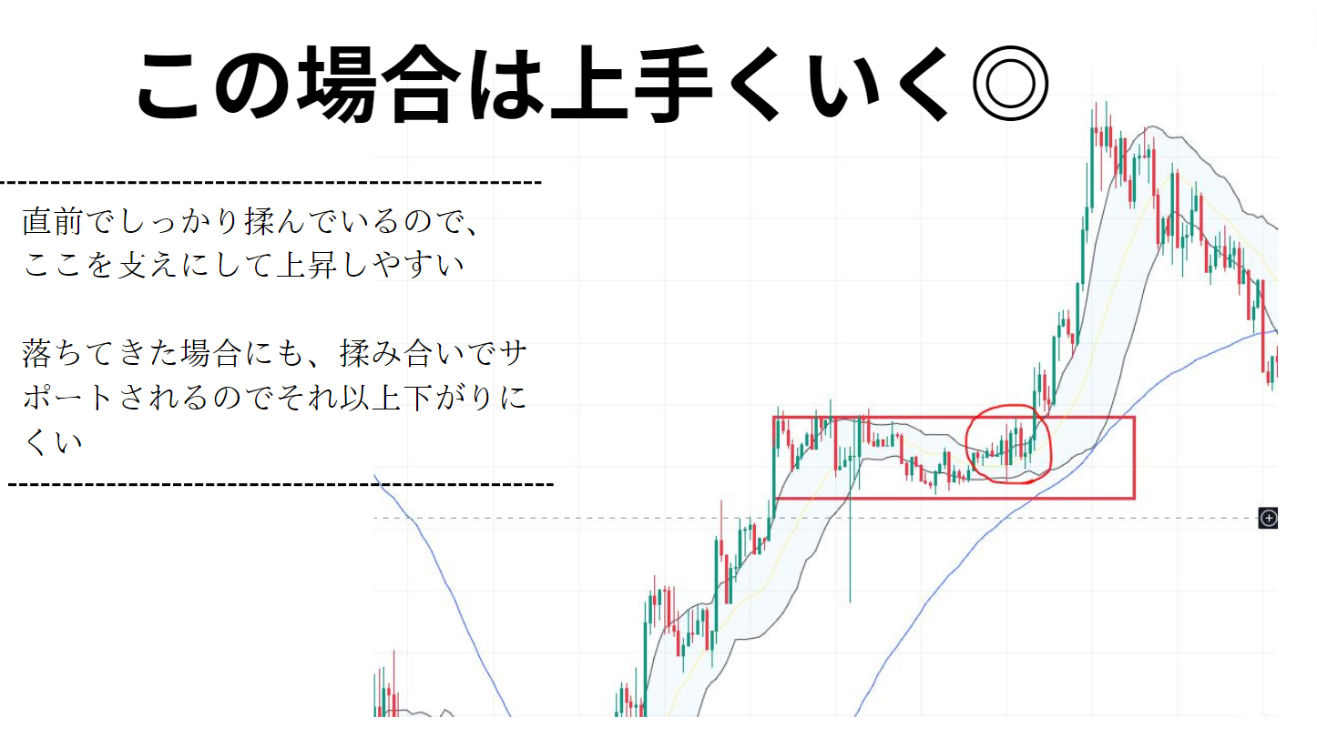 また、レンジ全体の塊と、その中にある小さなもみ合いが2重に条件整っていることになるので、