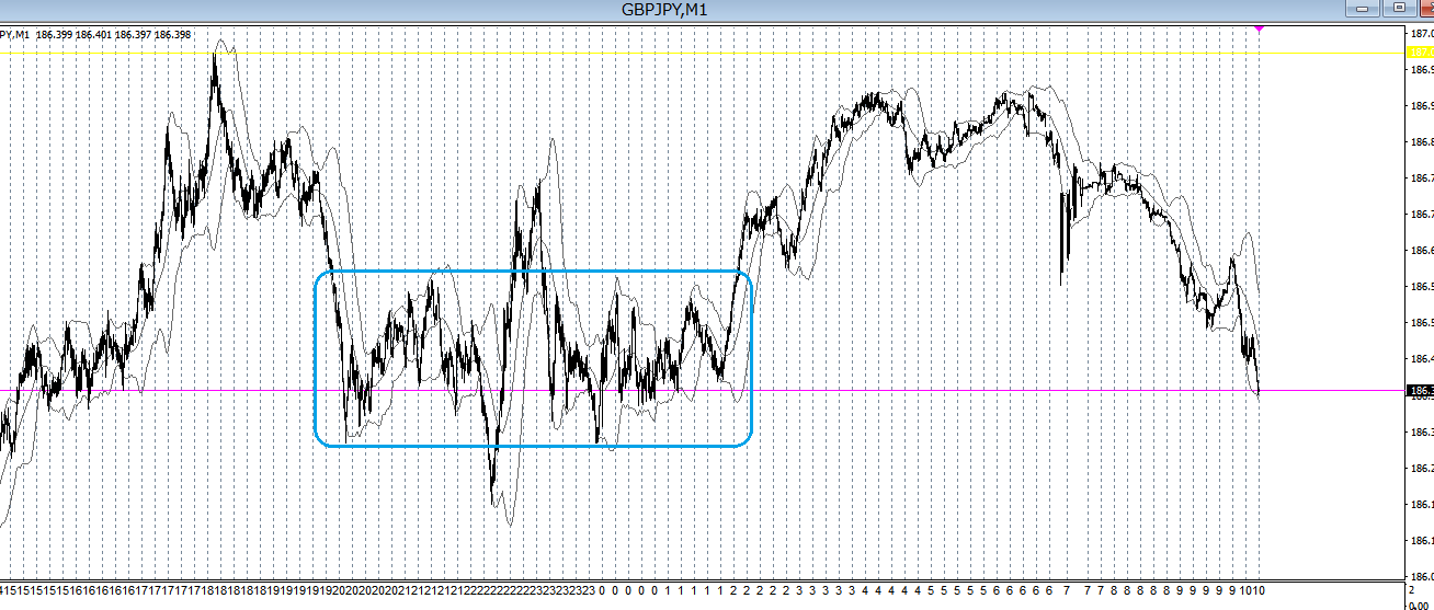 ゴチャゴチャしていますが、億トレーダーのスキャルピングユーザーの皆様は、普段見ている1分足チャートを1時間足チャートに切り替えて見て下さい。