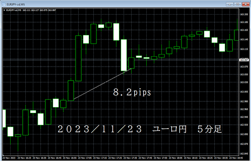 特に1分足や5分足などのスキャルピングではこのレンジブレイクは強力なトレンドを発生させるので特筆です