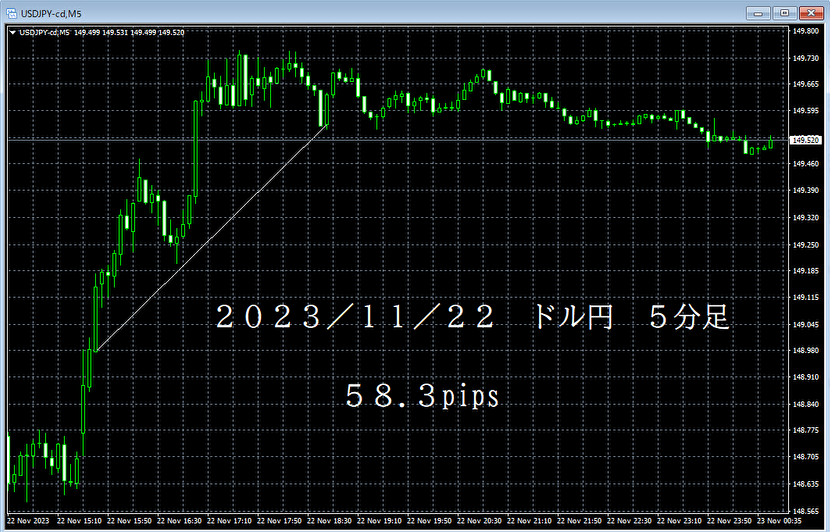また、手法部分にあたる移動平均線などのテクニカル指標はここではお見せできないため非表示となっています
