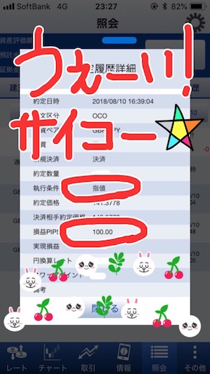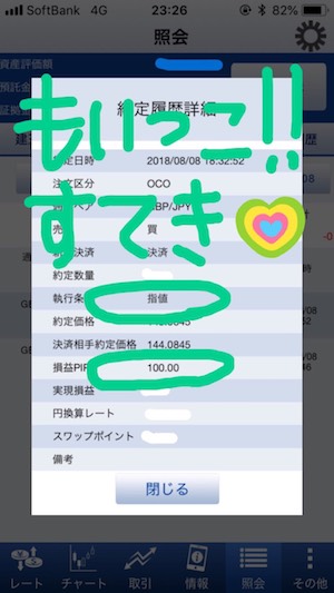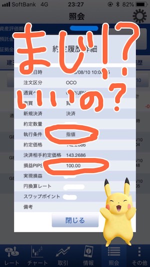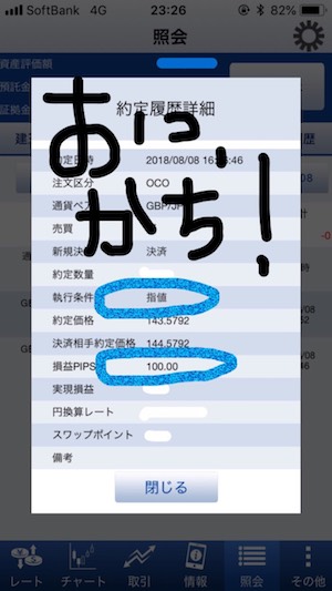 → 利食いは100pips、損切りは90pipsでOCOでセット