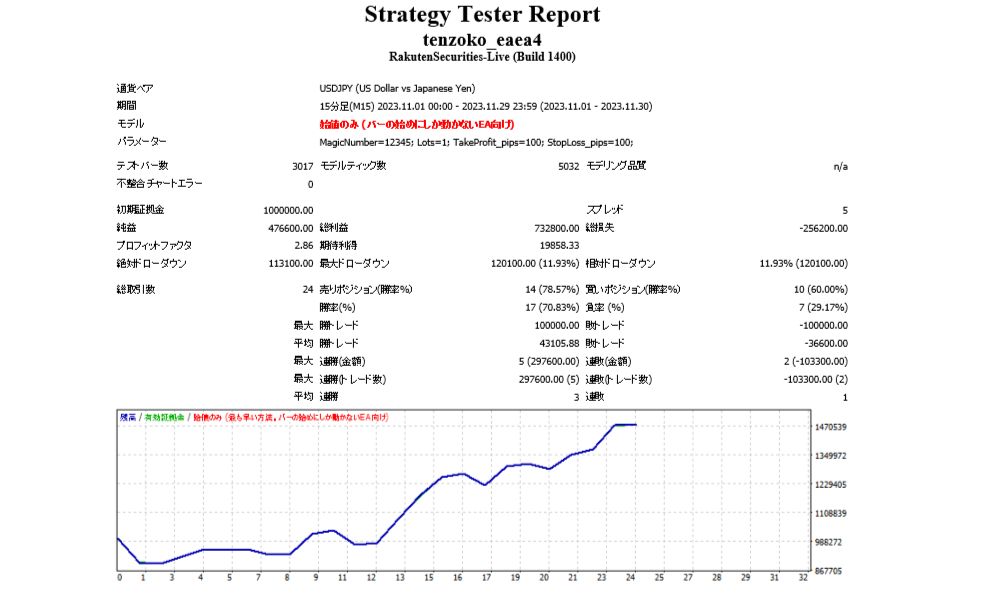 下記のバックテストは天底トリガーEAを使い簡易的なバックテストをしました