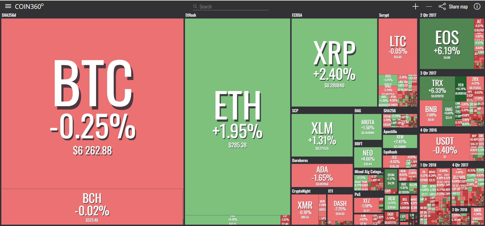 coinmarketcap(コインマーケットキャップ)のサイトから、ドミナンス(各銘柄が仮想通貨全体の時価総額に占めるパーセンテージ)を定点観測していきます。仮想通貨全般が下方向に大きく動き出している相場状況を受け、毎日更新することとし、仮想通貨業界を俯瞰および転換期を早期に発見することを目的とします。