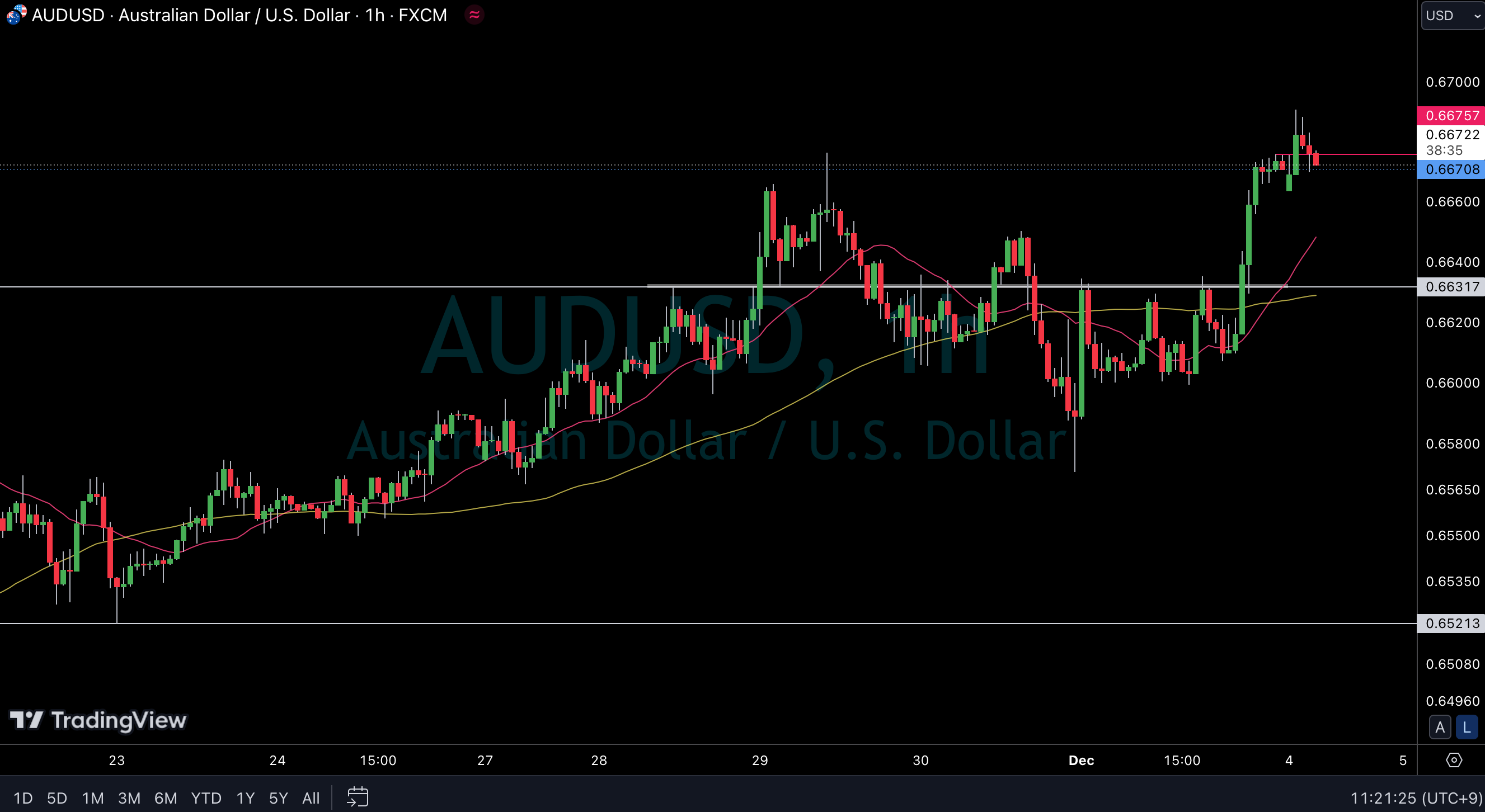 1時間足、勢いよく上げた後なので調整が入るか、ひとまず1hのmaまで