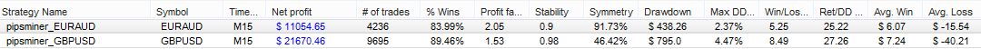 ねこ博士新作! Pips_Miner を比較(GBPUSD、EURAUD)