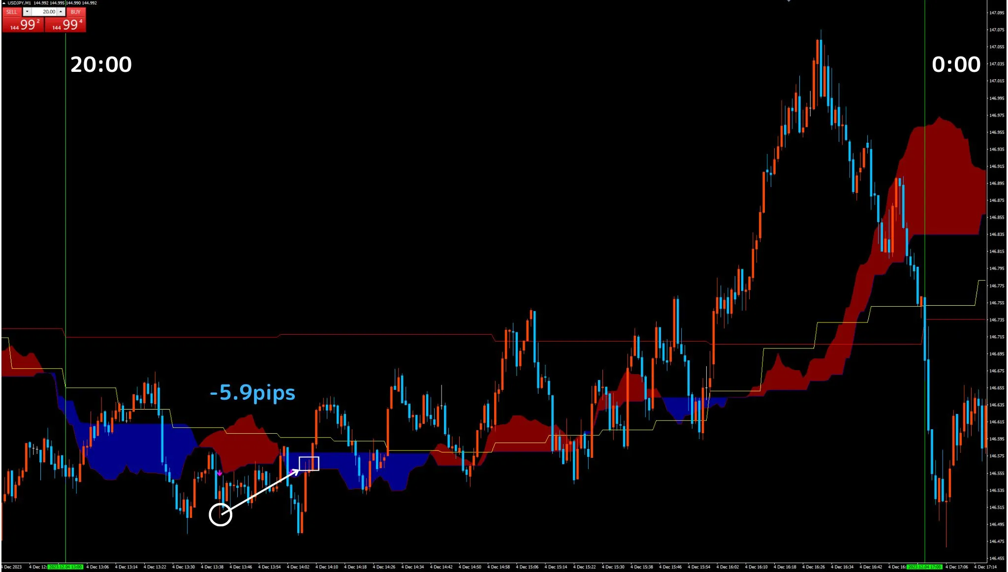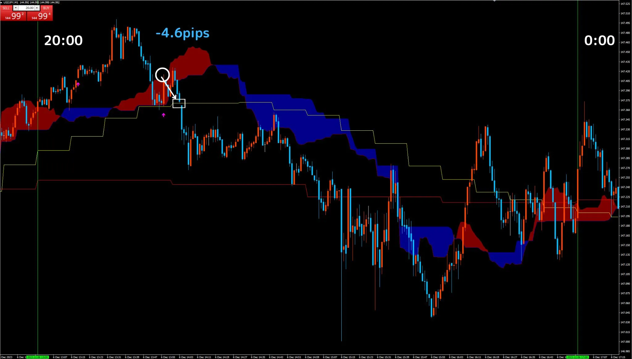 一週間(12/4~12/8)のNYタイム前からのUSD/JPYにおける、