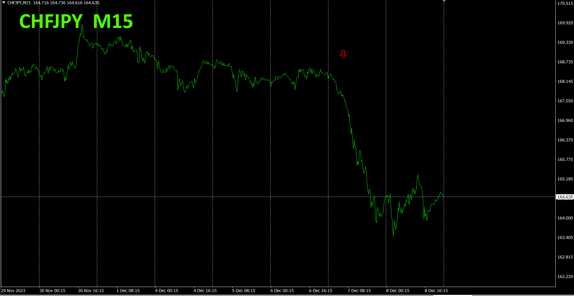 では、CHFJPYのチャートを見てみましょう。