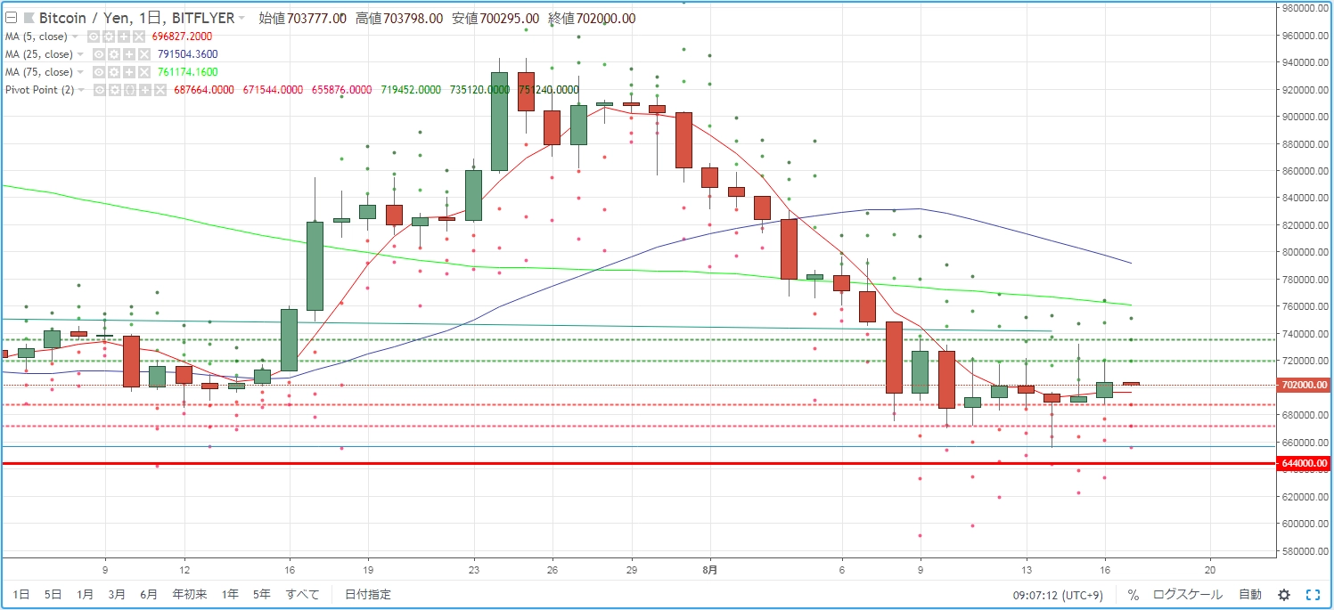 画像は2018年8月17日のキャプチャ。全般的に方向感なく上下する相場環境でした。言い換えれば、値動きが煮詰まってきており、そうなるとどちらかへ走り出す可能性を秘めています。