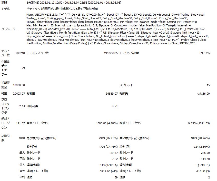 まず驚いたのは元祖Scal_USDJPYよりも取引回数が格段に多いことです。