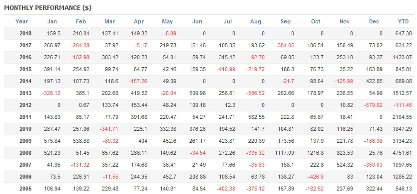 年別で見ると、2012年が微損になっていますがその他の年は平均して利益を獲得しています。