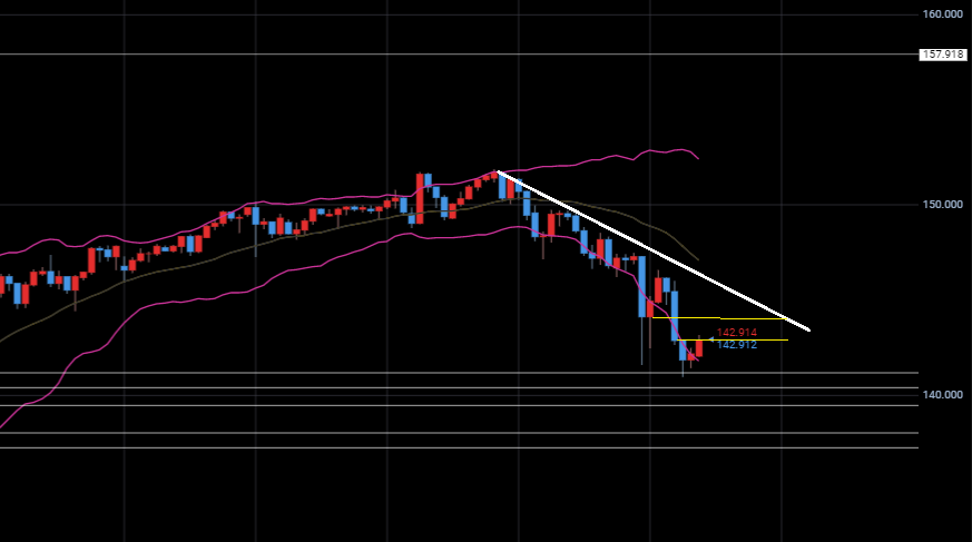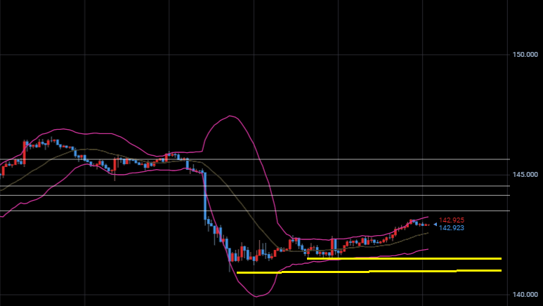 ドル円は142ミドル付近まで下げています。