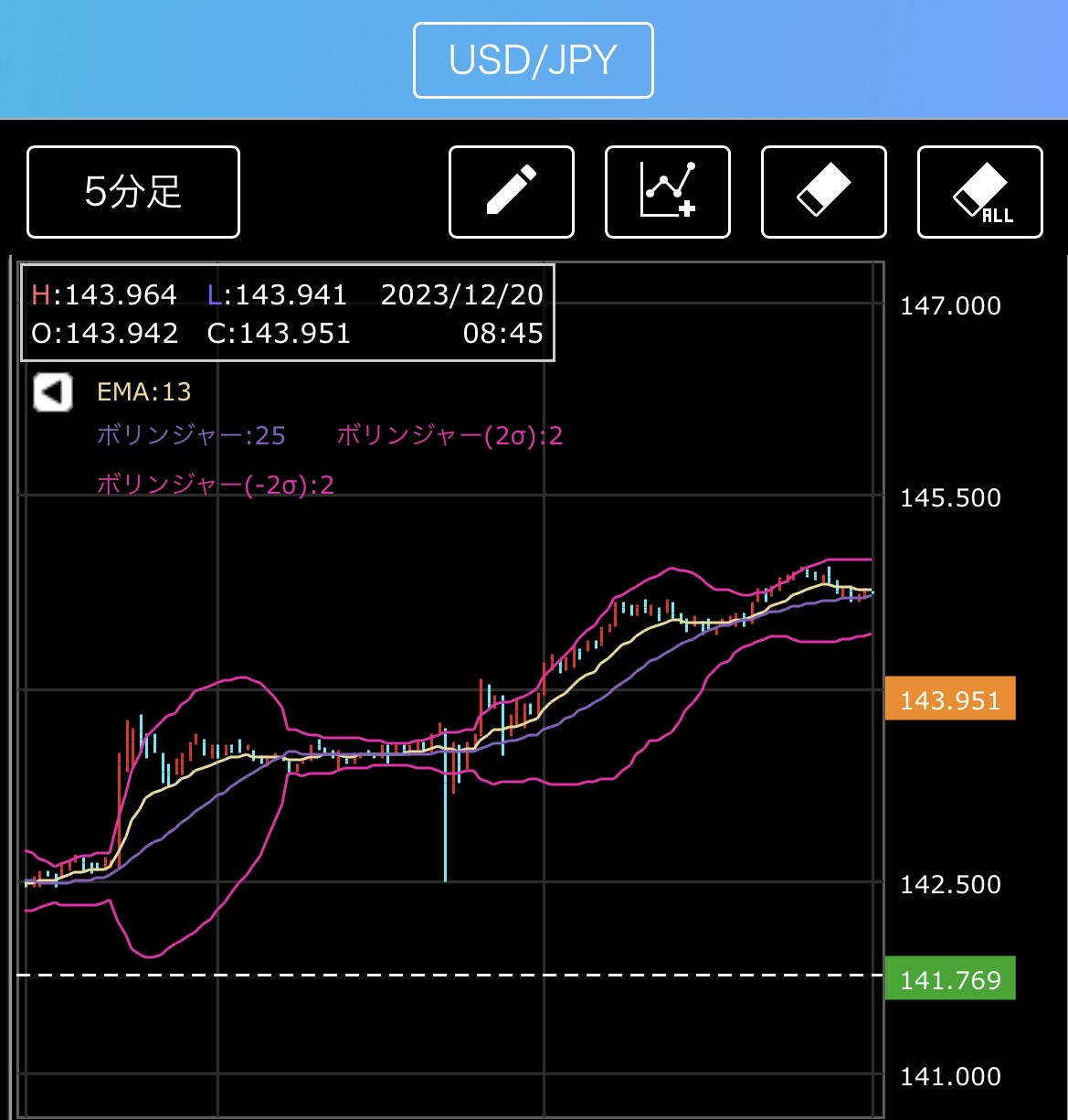 この場合、5分足億トレラインが使えそうです。