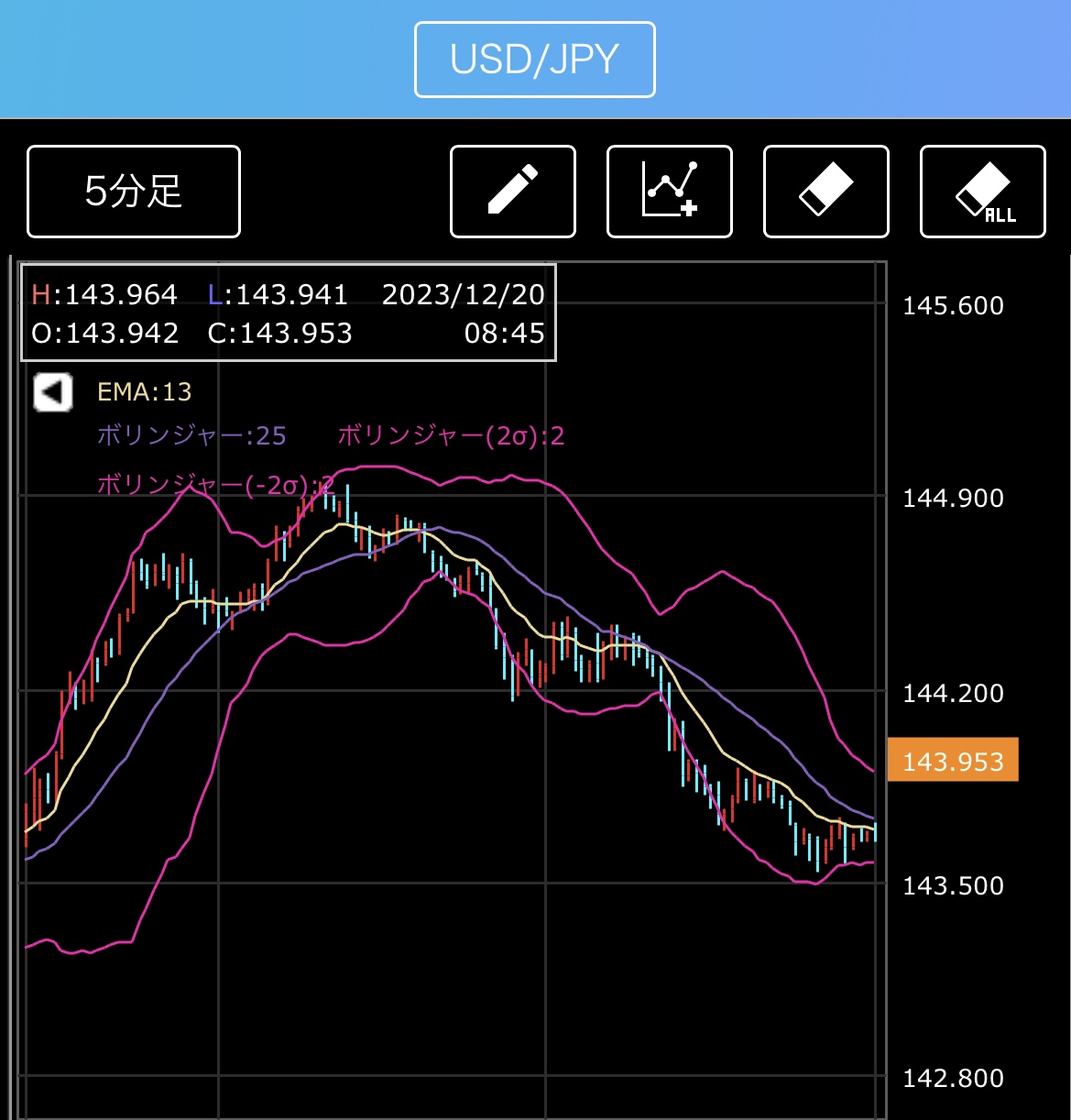 1時間足億トレチャートで確認して下さい。