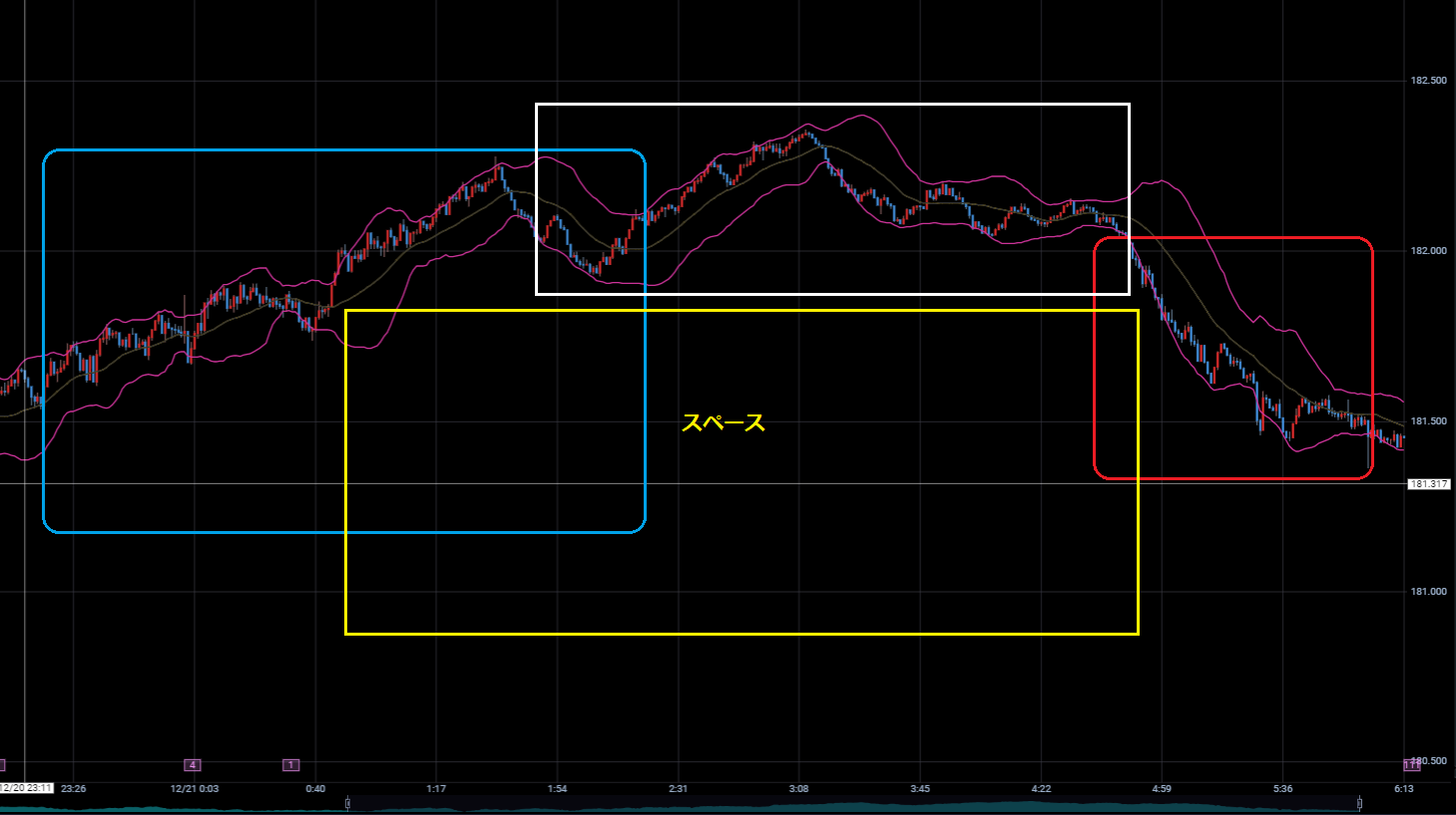 さて、下記チャートは、ポンド円1分足チャートです。
