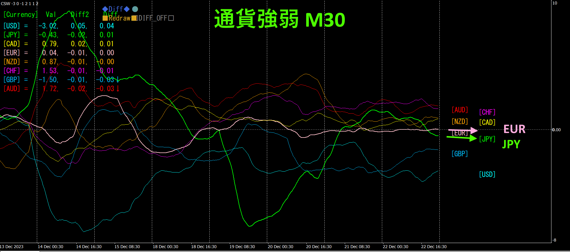 30分足の通貨強弱チャートです。