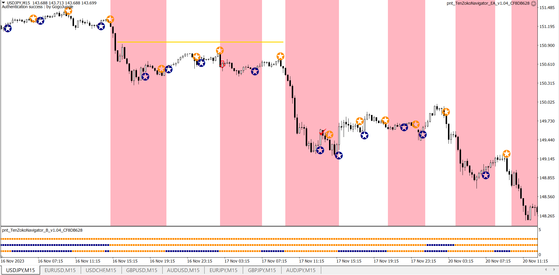 【ぽんたシグナル】「天底ナビゲーター手法」+「一目でわかる高精度マルチタイムフレームインジケーター」+「自動利確EA」セット