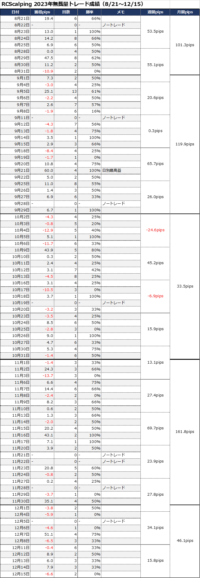 そこから12/15(金)まで、約4ヶ月間の成績になります。