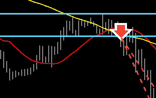 その戻しが1時間足maに押さえられるところで攻防。