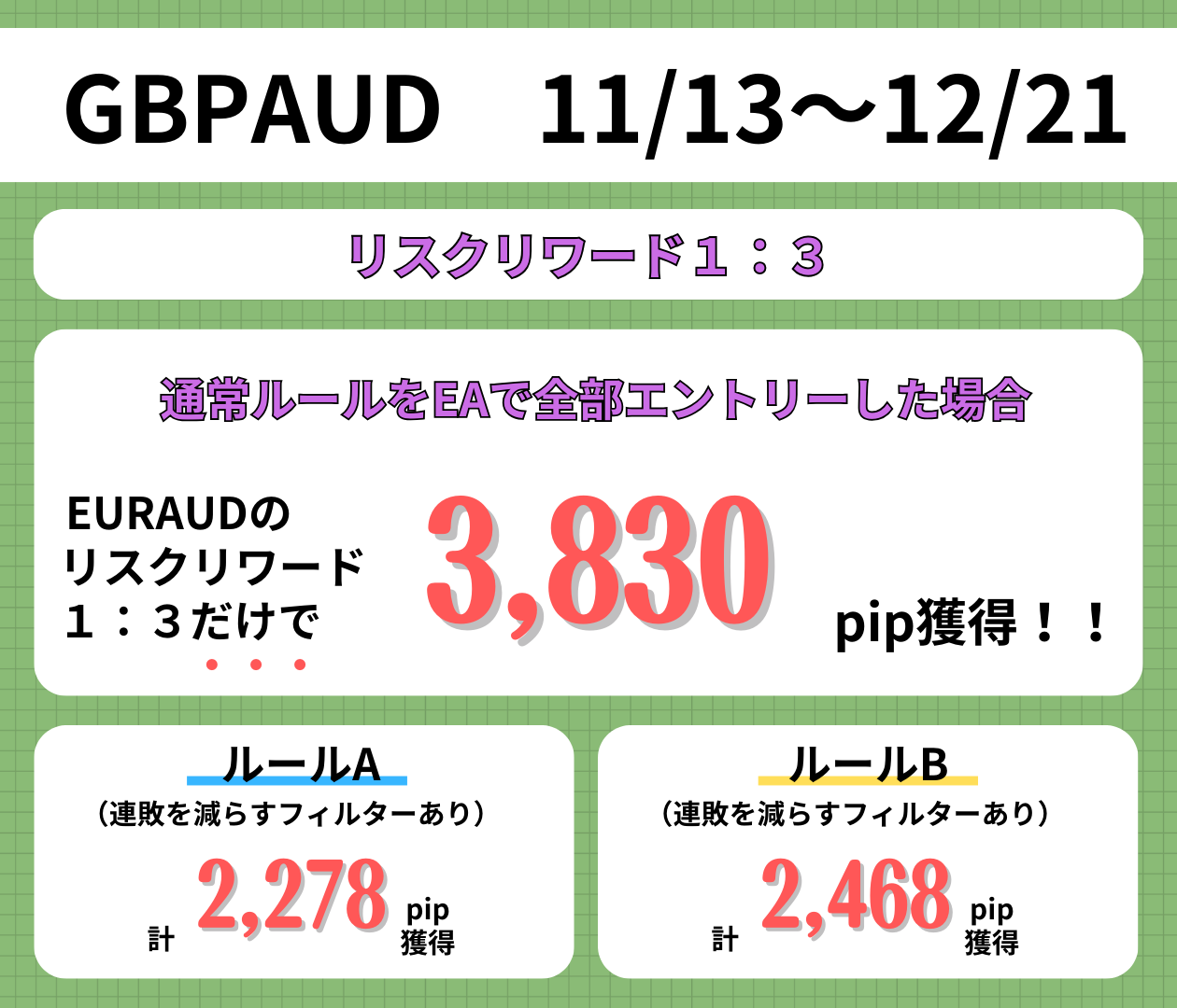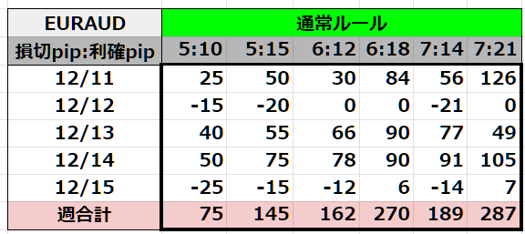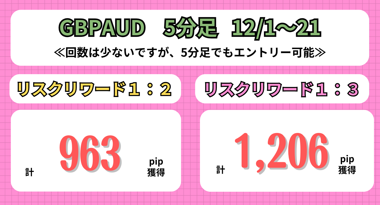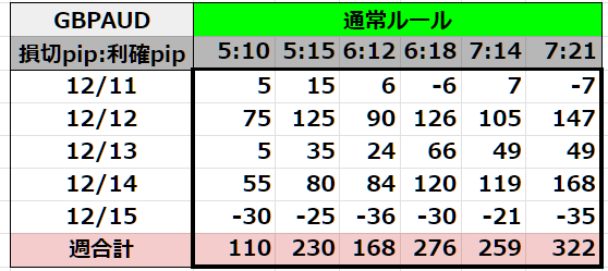 結果としてはGBPAUDの利確21pipだった場合はたった一週間で322pipも取れているというとんでもない結果となりました!