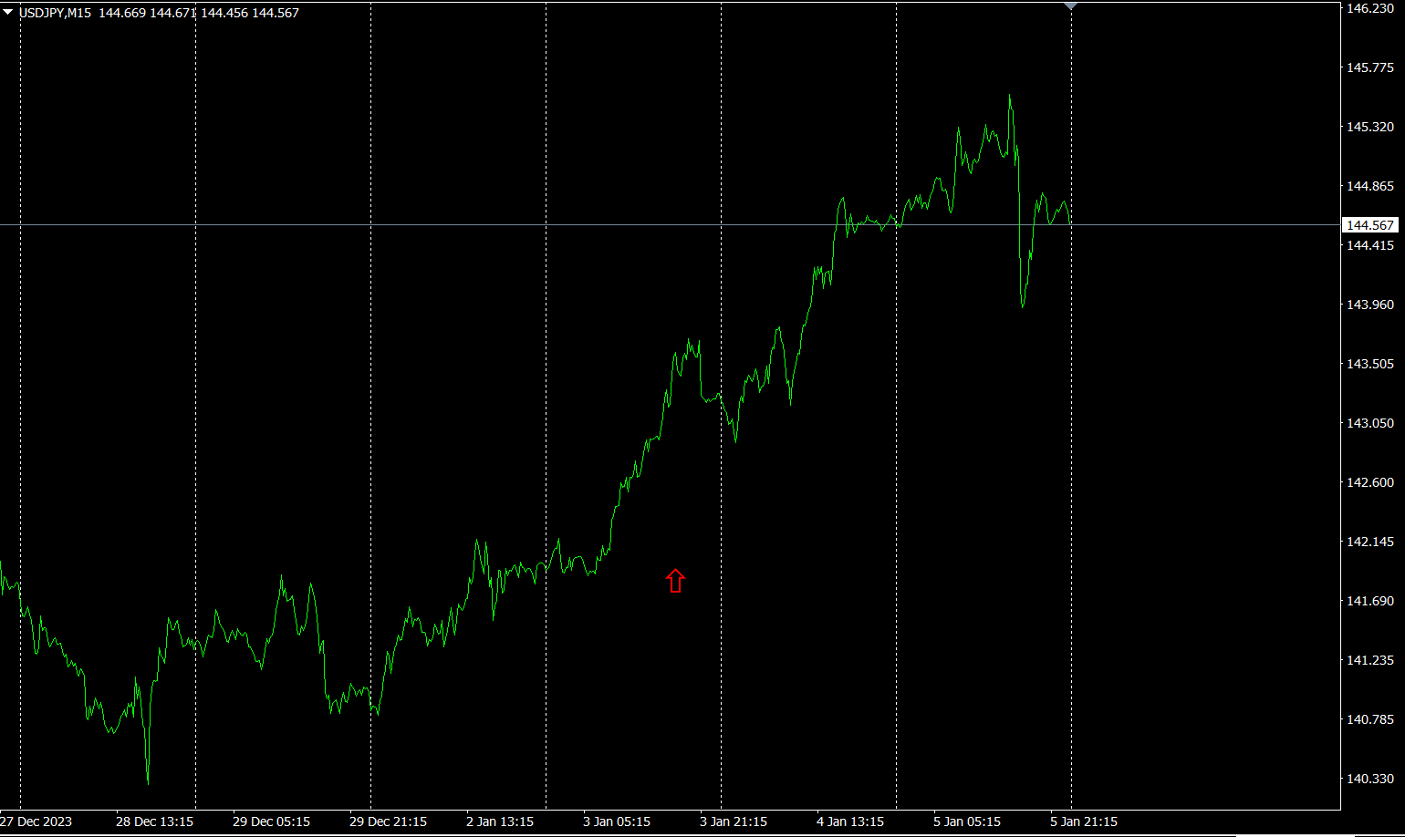 赤色の矢印がスクリーンショットを撮影した所です。急上昇している所を捉えています。