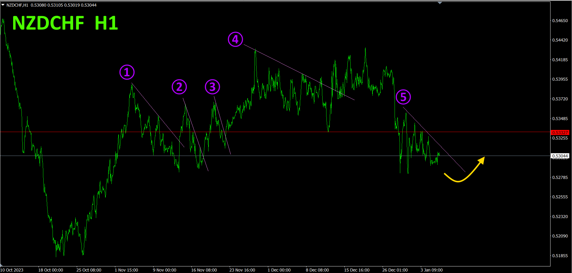 2505「天底Searchインジケータ」を使い、大底に位置する通貨ペアとしてNZDCHFを選択しました。大底からの上昇を狙っています。