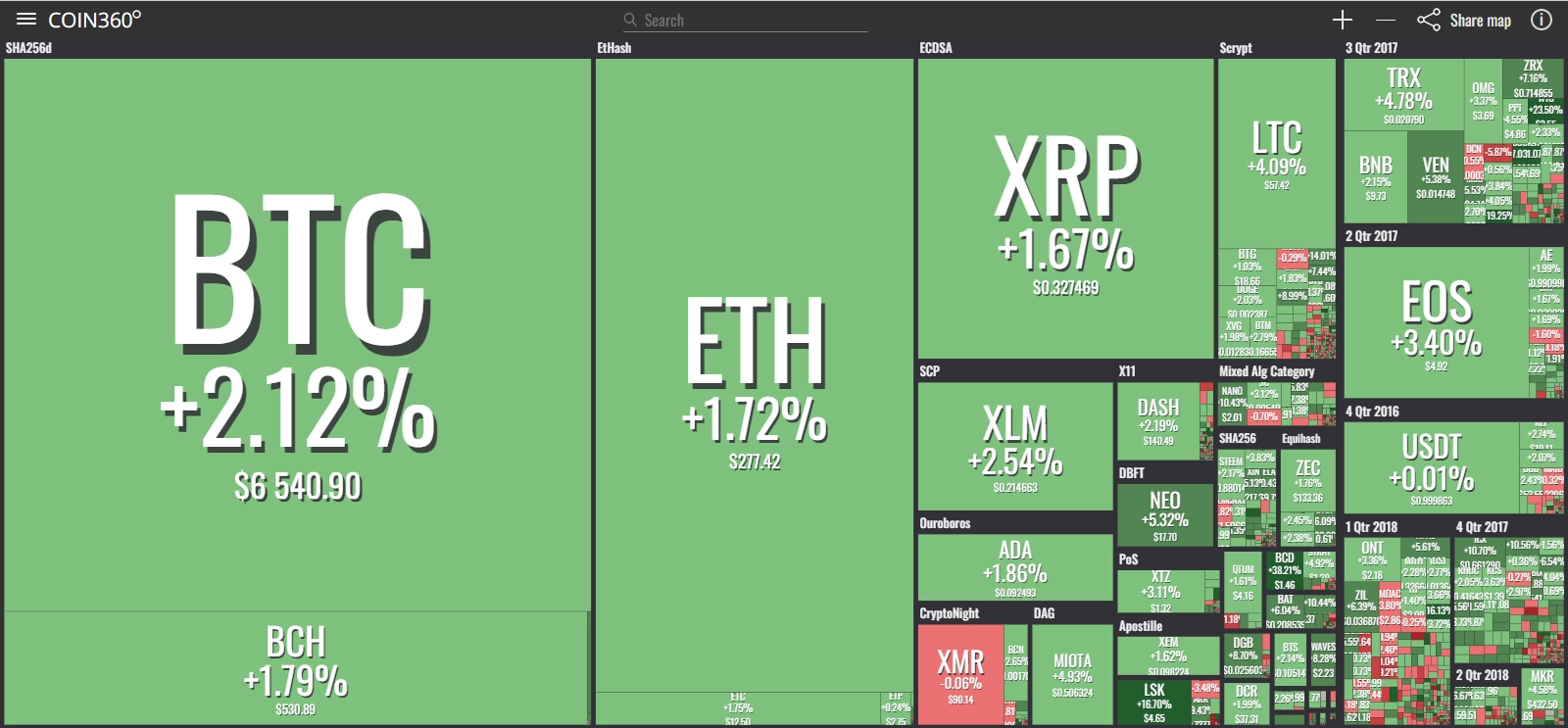 coinmarketcap(コインマーケットキャップ)のサイトから、ドミナンス(各銘柄が仮想通貨全体の時価総額に占めるパーセンテージ)を定点観測していきます。仮想通貨全般が下方向に大きく動き出している相場状況を受け、毎日更新することとし、仮想通貨業界を俯瞰および転換期を早期に発見することを目的とします。