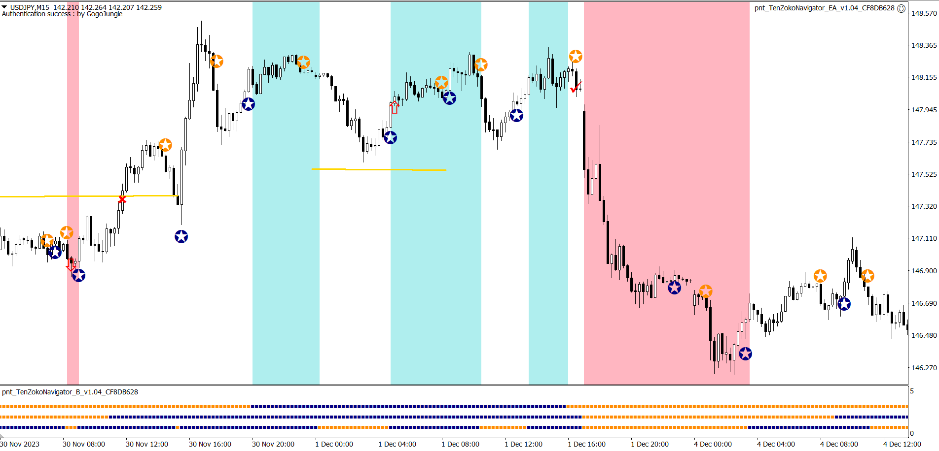 【ぽんたシグナル】「天底ナビゲーター手法」+「一目でわかる高精度マルチタイムフレームインジケーター」+「自動利確EA」セット