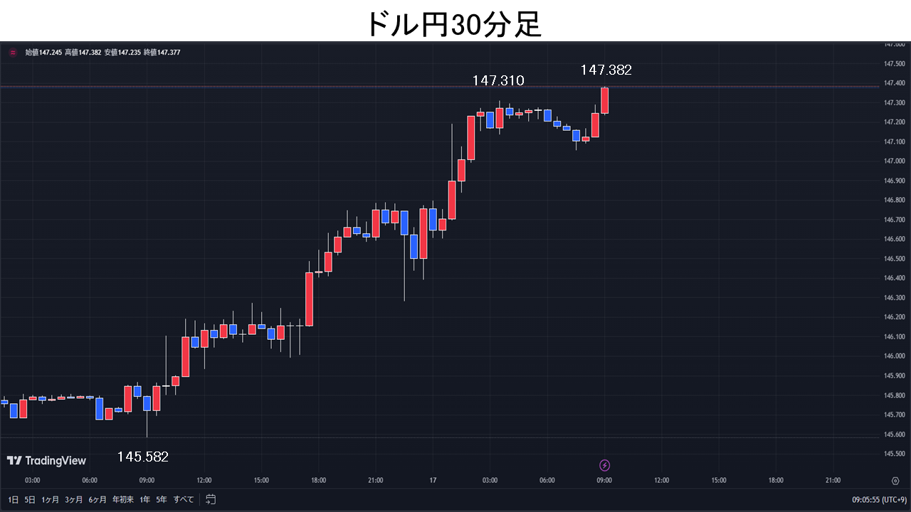 ウォラーFRB理事の米利下げ観測牽制発言で、ドル円147円台まで上昇。