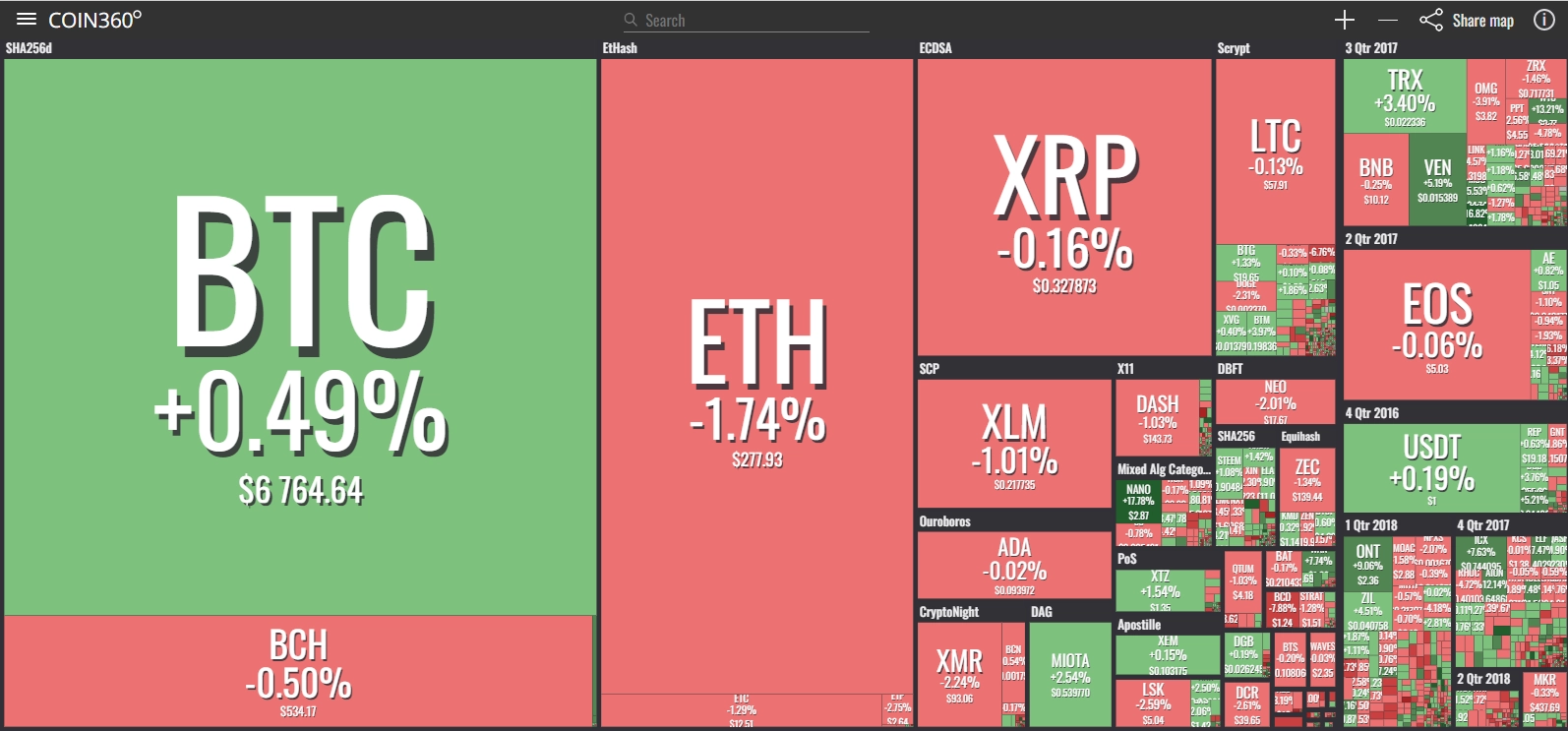 coinmarketcap(コインマーケットキャップ)のサイトから、ドミナンス(各銘柄が仮想通貨全体の時価総額に占めるパーセンテージ)を定点観測していきます。仮想通貨全般が下方向に大きく動き出している相場状況を受け、毎日更新することとし、仮想通貨業界を俯瞰および転換期を早期に発見することを目的とします。