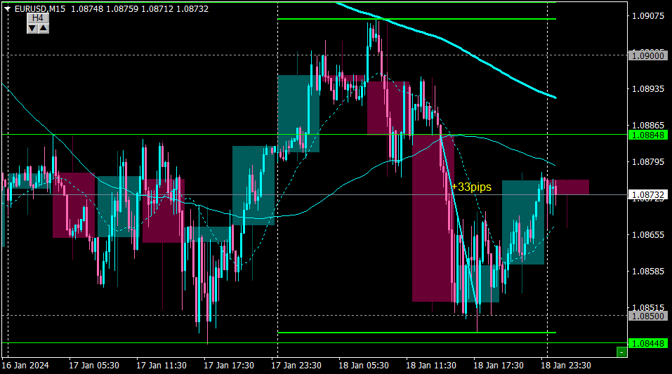 昨日は朝のシナリオ通り、1.090で天井圏を作ったところでショート。+33pips
