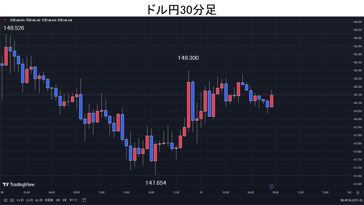 東京時間、安く始まった日経平均が上昇に転じるとクロス円の上昇とともにドル円は148.25円まで上昇。しかし、仲値で本邦実需の売り観測があり失速。148円前後でもみ合う中、一時147.76円まで下押し。欧州時間、米10年債利回りが低下し、ドル円は147.65円まで下落となるが、その後は買戻しが先行。NY時間、前週分の米新規失業保険申請件数が18.7万件(予想20.7万件)と強い結果となったほか、12月米住宅着工/建設許可件数が予想を上回ると米10年債利回りの上昇とともにドル円は148.30円まで上昇。