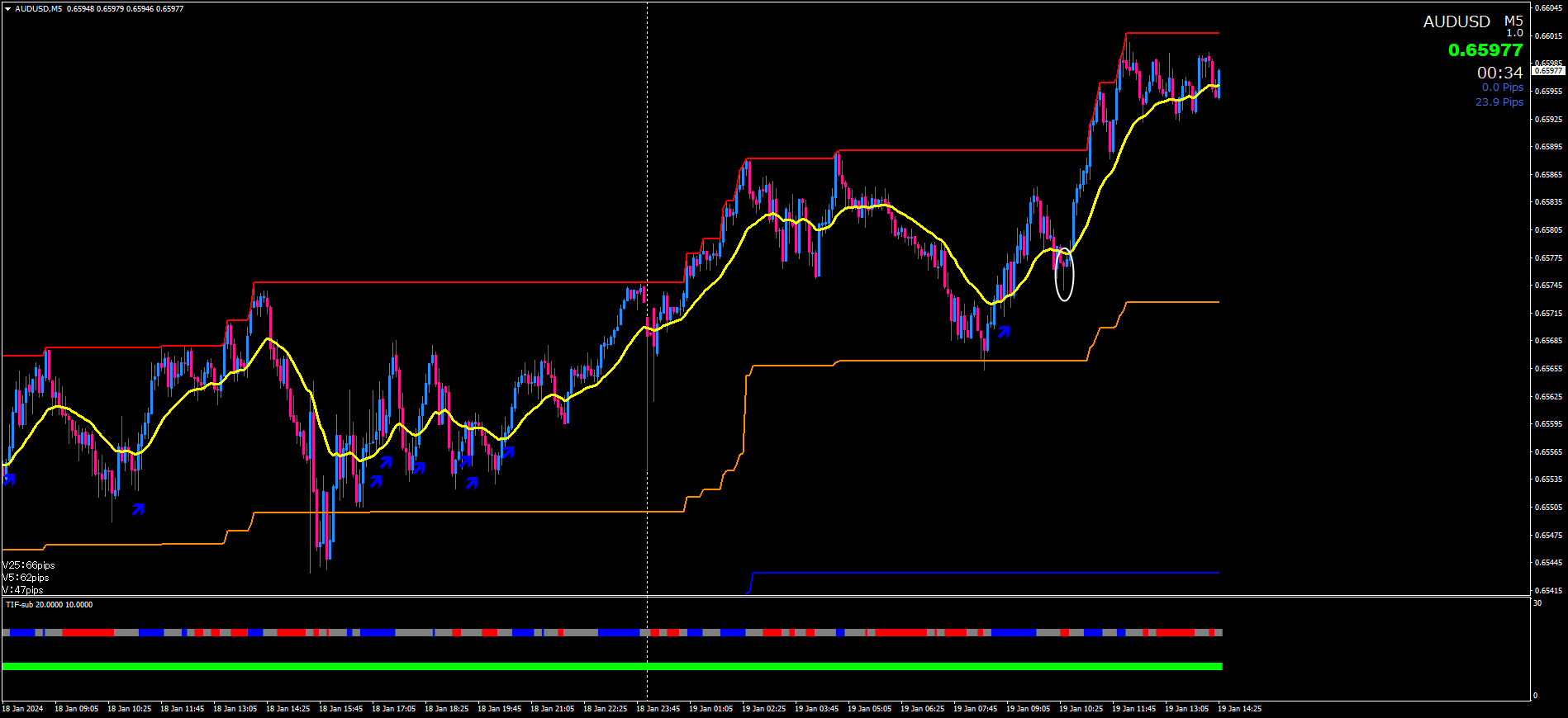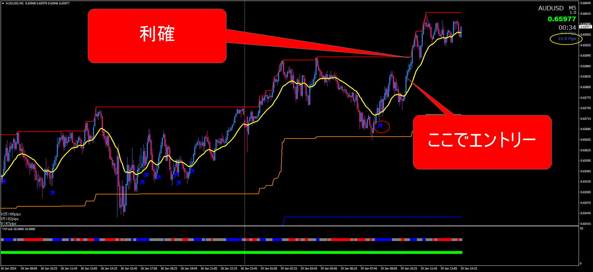 上昇サインが出た際は、5分足だとWトップ後の戻りに見えますが