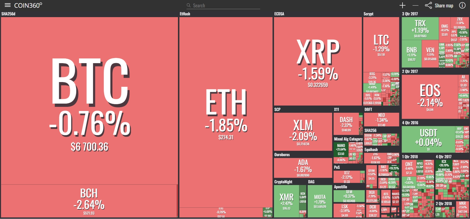 coinmarketcap(コインマーケットキャップ)のサイトから、ドミナンス(各銘柄が仮想通貨全体の時価総額に占めるパーセンテージ)を定点観測していきます。仮想通貨全般が下方向に大きく動き出している相場状況を受け、毎日更新することとし、仮想通貨業界を俯瞰および転換期を早期に発見することを目的とします。
