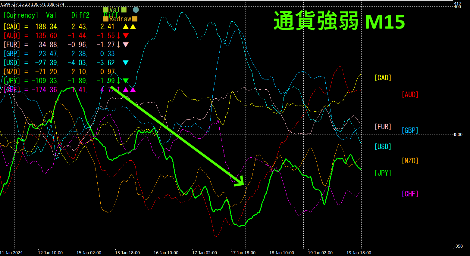 月曜日から水曜日にかけて、通貨JPYが弱くなっていることがわかります。