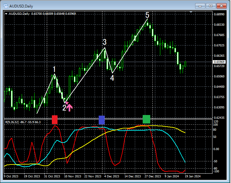 RCI3本ラインとエリオット波動とmBDSR(RCI2本フィルター)の押し目買いサイン