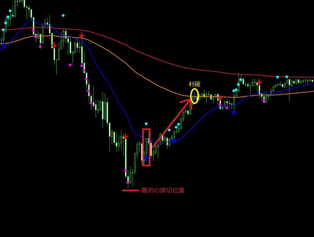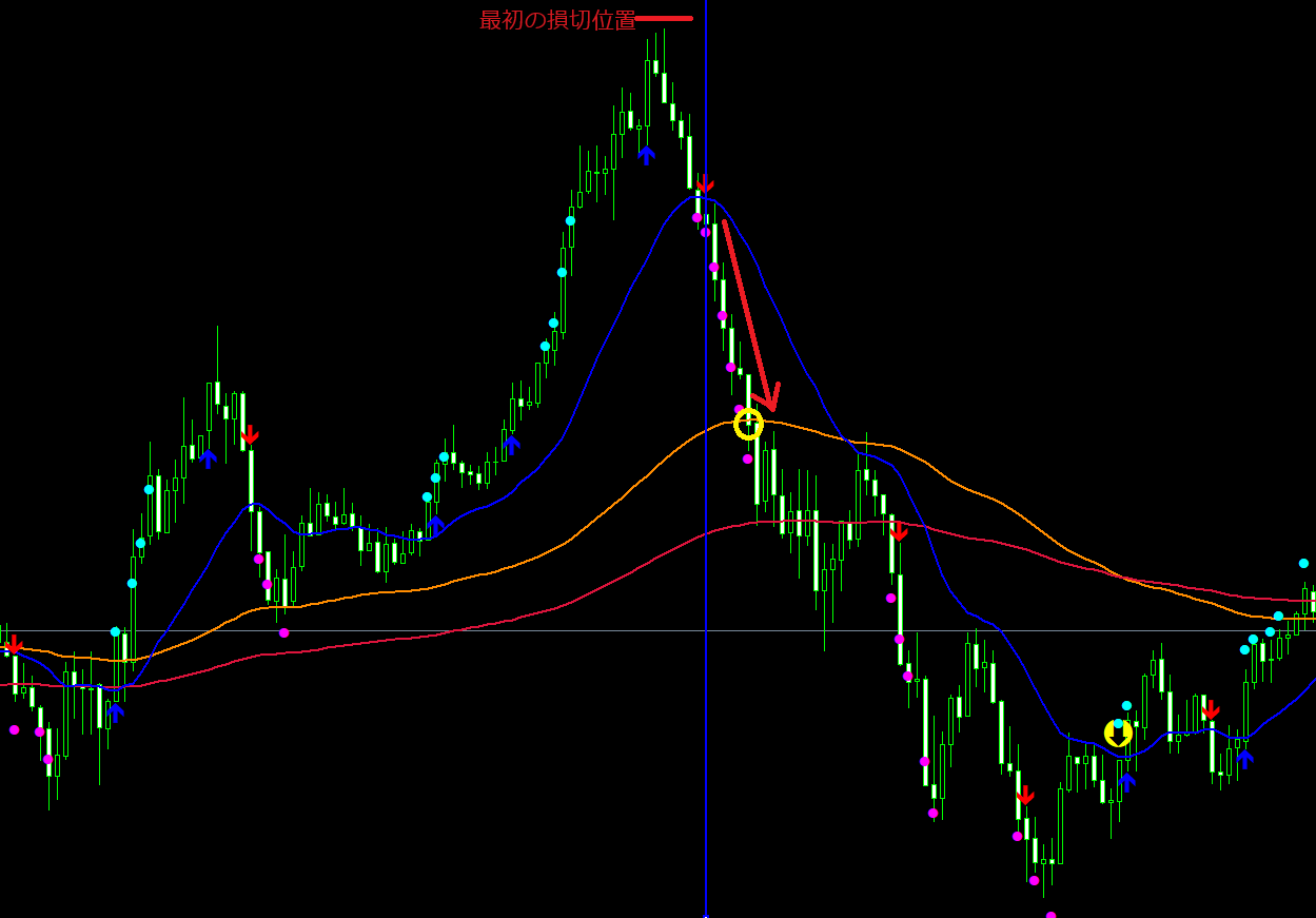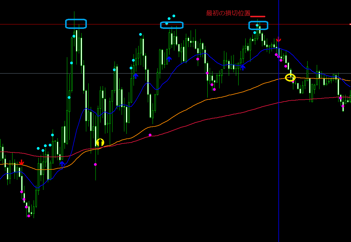 ①と同時に考える必要がありますがこの損切位置があらかじめ決まりますの