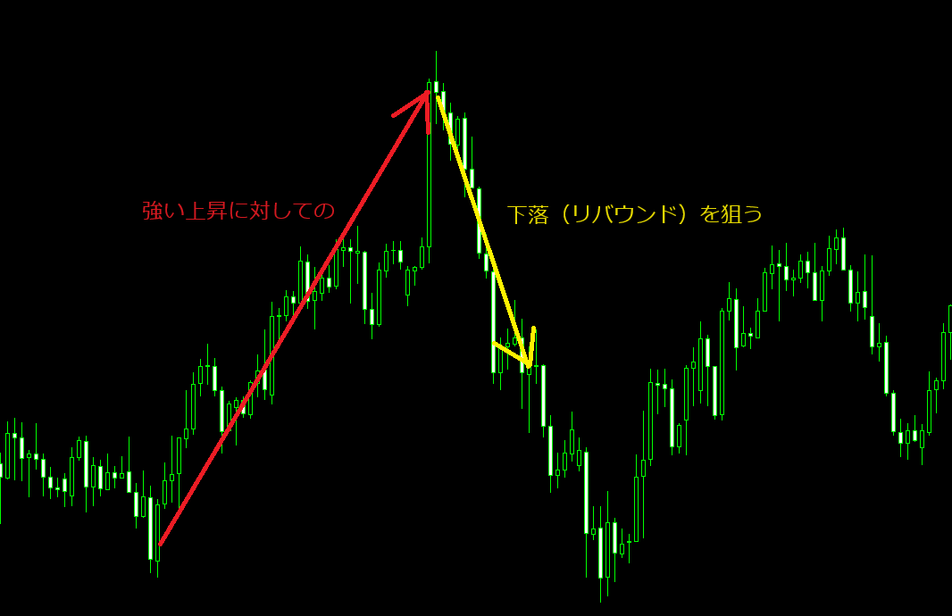 FXで言えば一方的に上昇(下降)した場合にリバウンドすなわち下降(上昇)を取るということです。