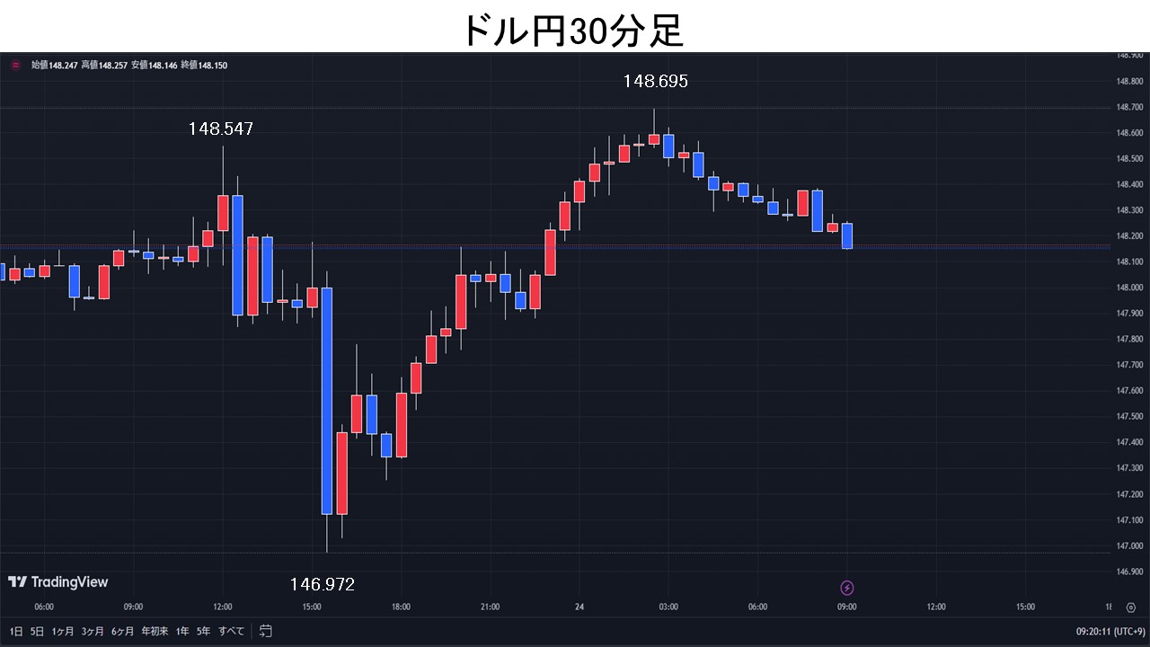 日銀会合は、金融政策維持。ドル円は、植田総裁発言で下押し後反発。