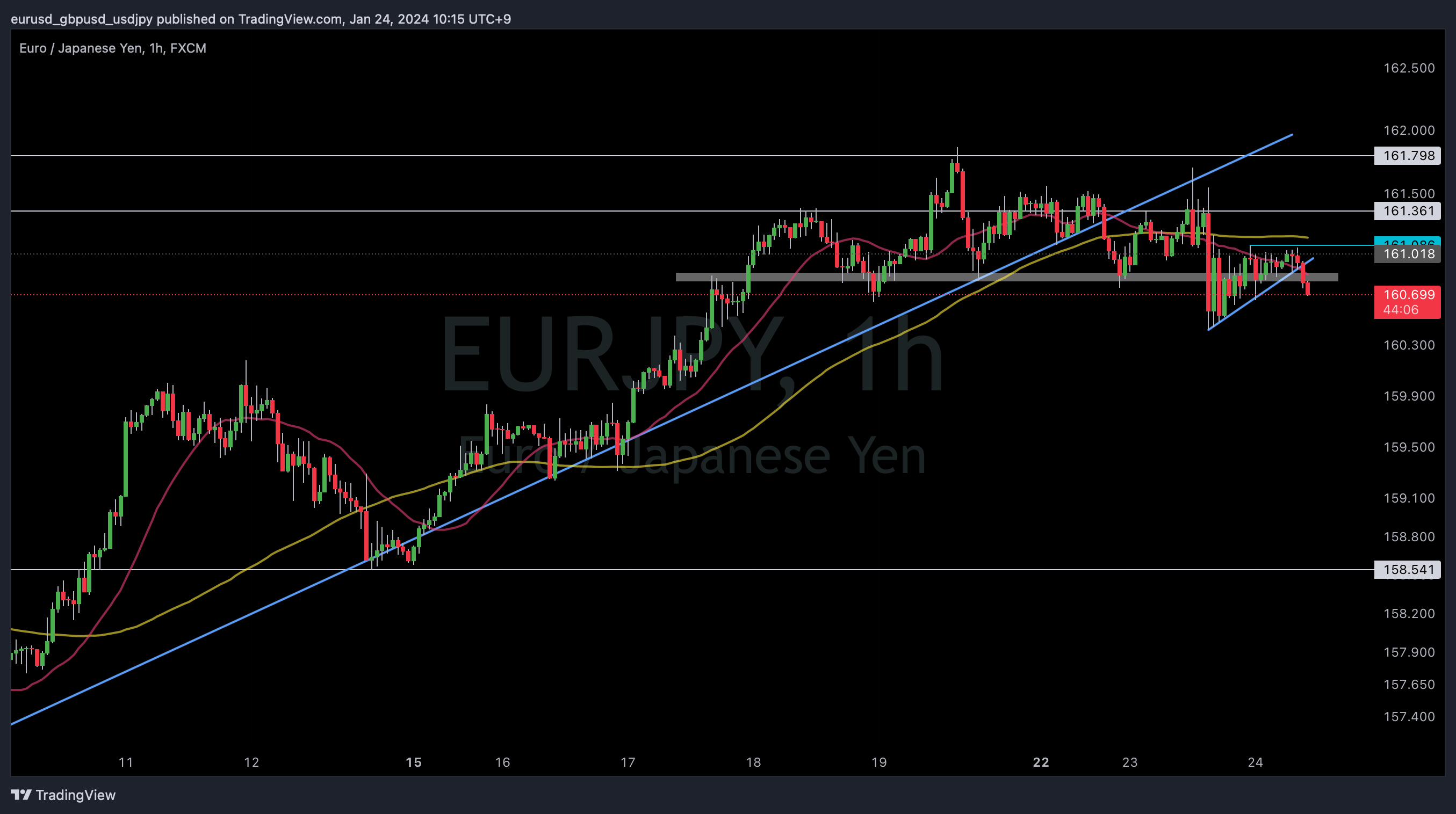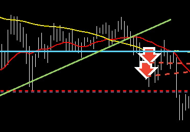 1時間足、白帯の揃えてきていた節目を下抜けから、