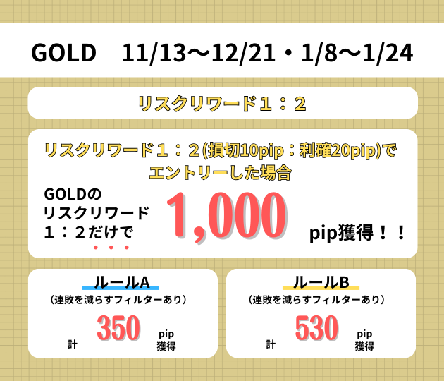 一方でGOLDが好調であり、淡々とpipを伸ばしています。