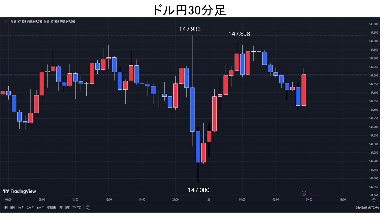 ドル円、米四半期GDP・コアPCEに反応し147円台で上下。