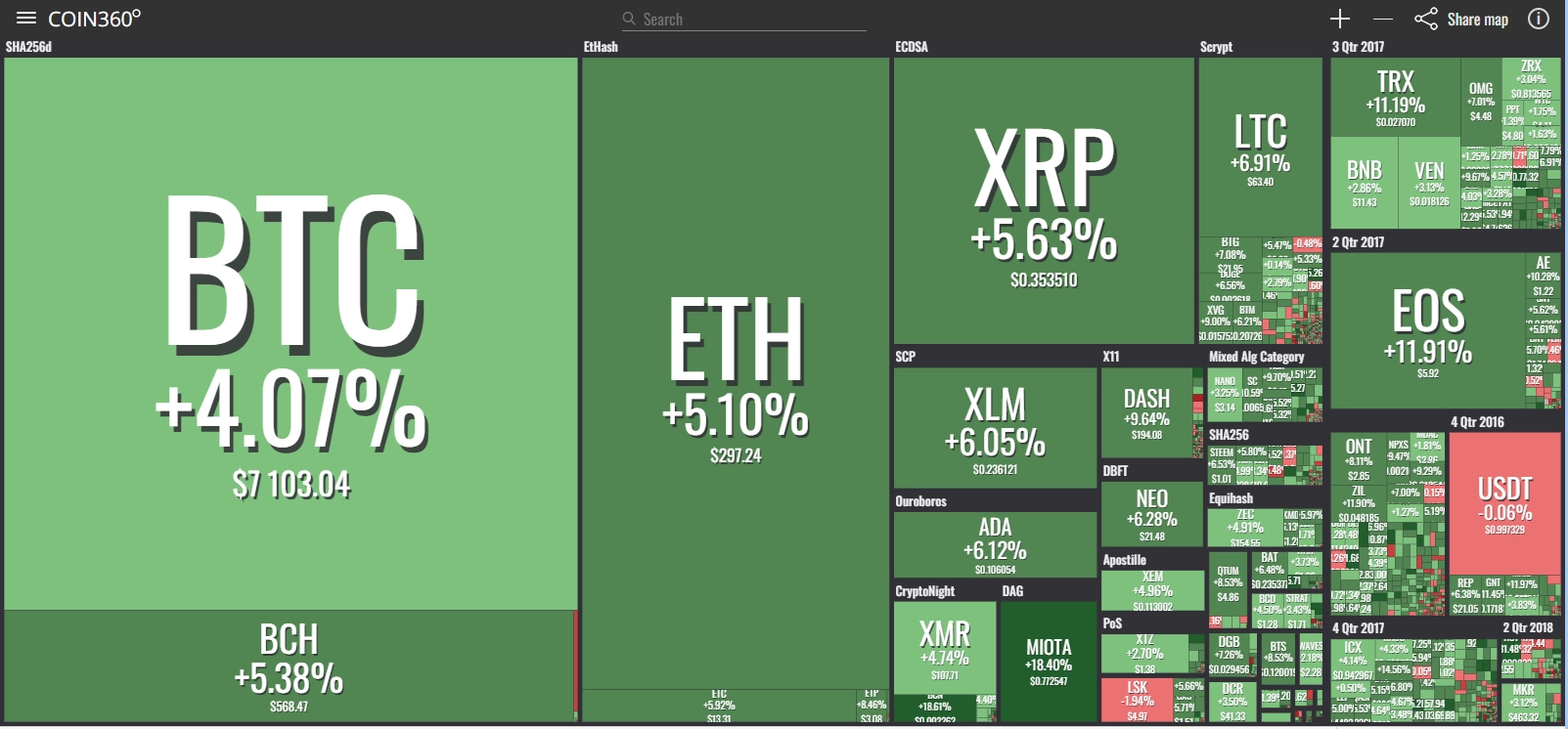 coinmarketcap(コインマーケットキャップ)のサイトから、ドミナンス(各銘柄が仮想通貨全体の時価総額に占めるパーセンテージ)を定点観測していきます。仮想通貨全般が下方向に大きく動き出している相場状況を受け、毎日更新することとし、仮想通貨業界を俯瞰および転換期を早期に発見することを目的とします。