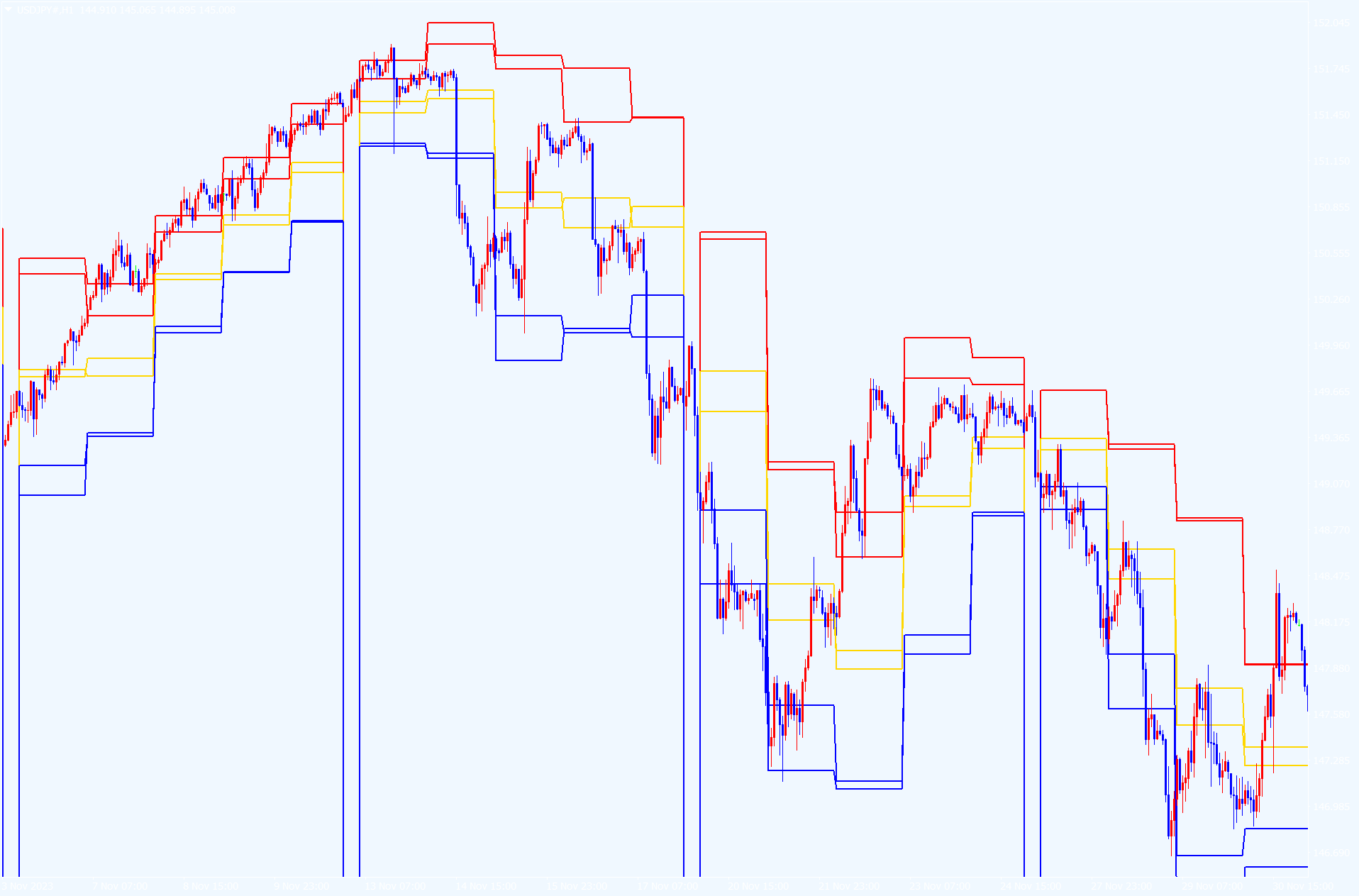 こちらの手法は19年間無敗・勝率77%・平均月利27%という驚異的な結果、 しかもこれは完全に無裁量となりますので、相場予想や相場分析、テクニカル分析もファンダメンタル分析も一切不要で、 インジケーターが注文位置・利確位置・損切位置をライン表示しますので、 誰がトレードをしても同じ結果になる再現性100%の手法になります。