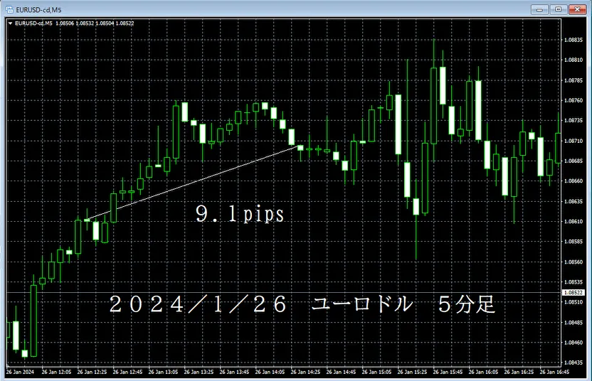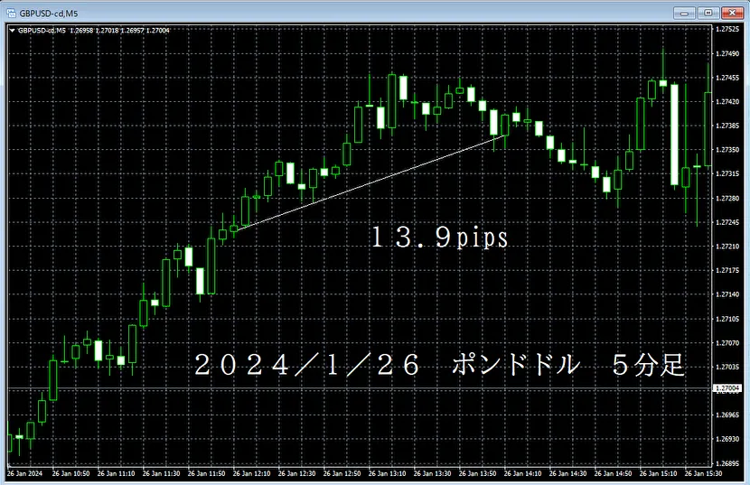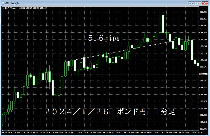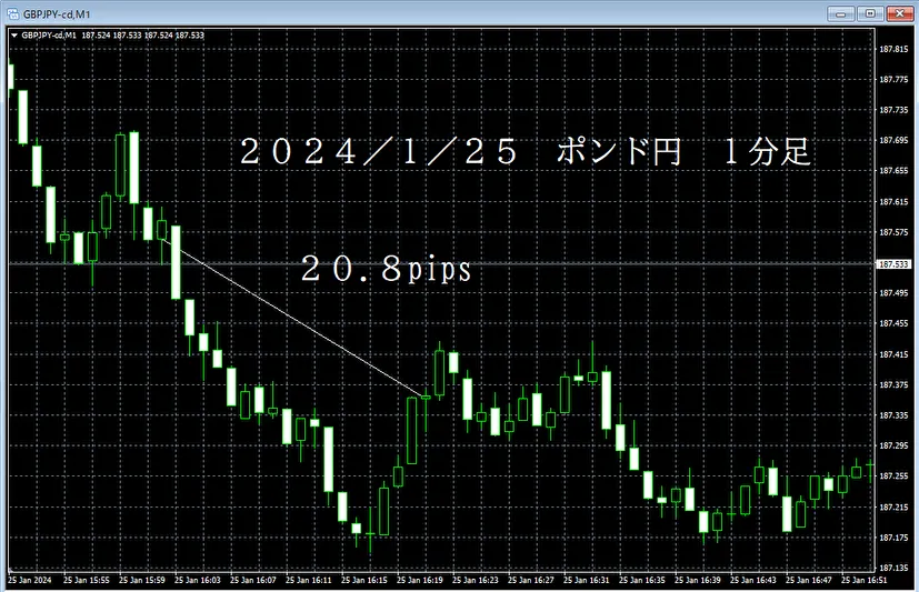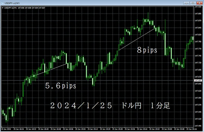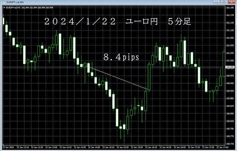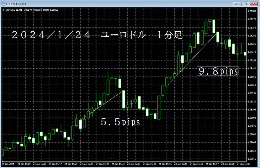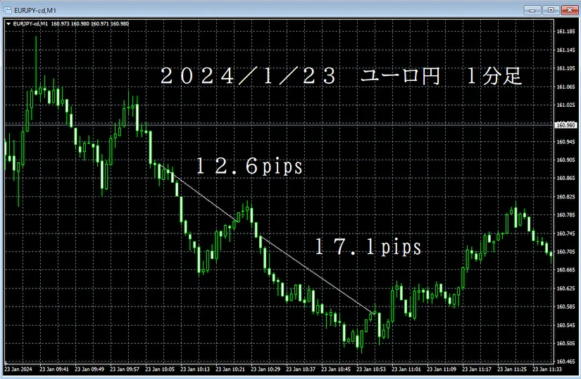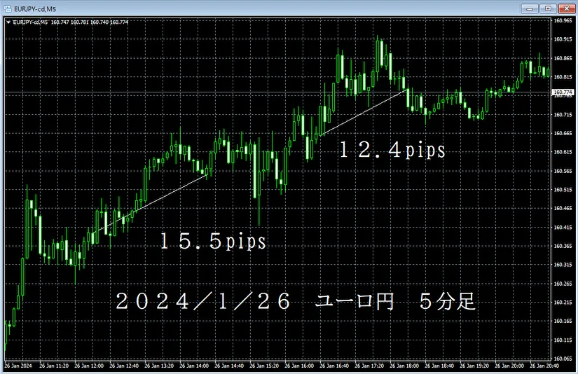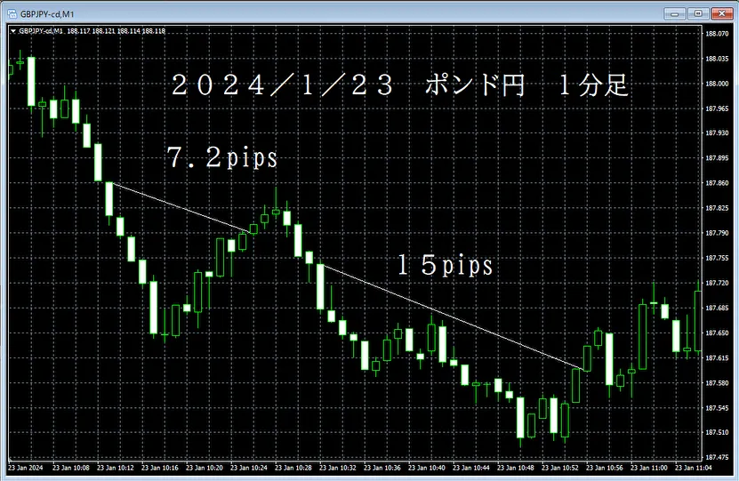 特に1分足や5分足などのスキャルピングではこのレンジブレイクは強力なトレンドを発生させるので特筆です