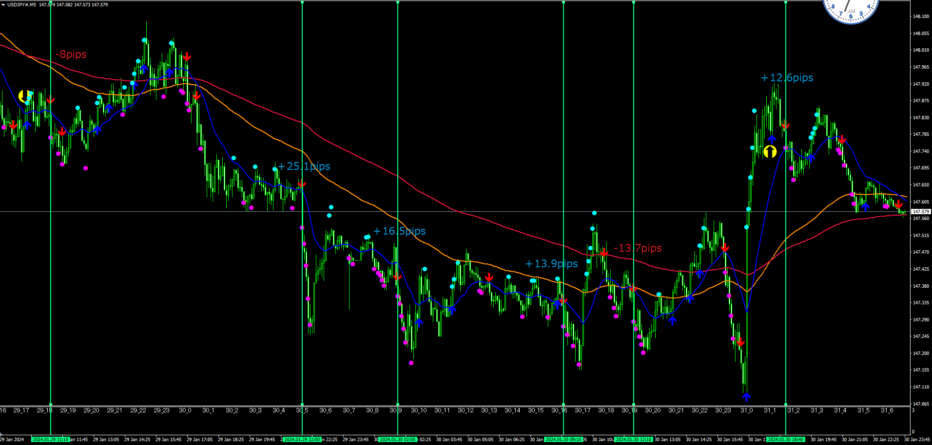 正直きれいなトレンドではないので新ツール、集大成ツールともに爆益だぜ!といったようないわゆる「ハマる」相場ではありませんね。