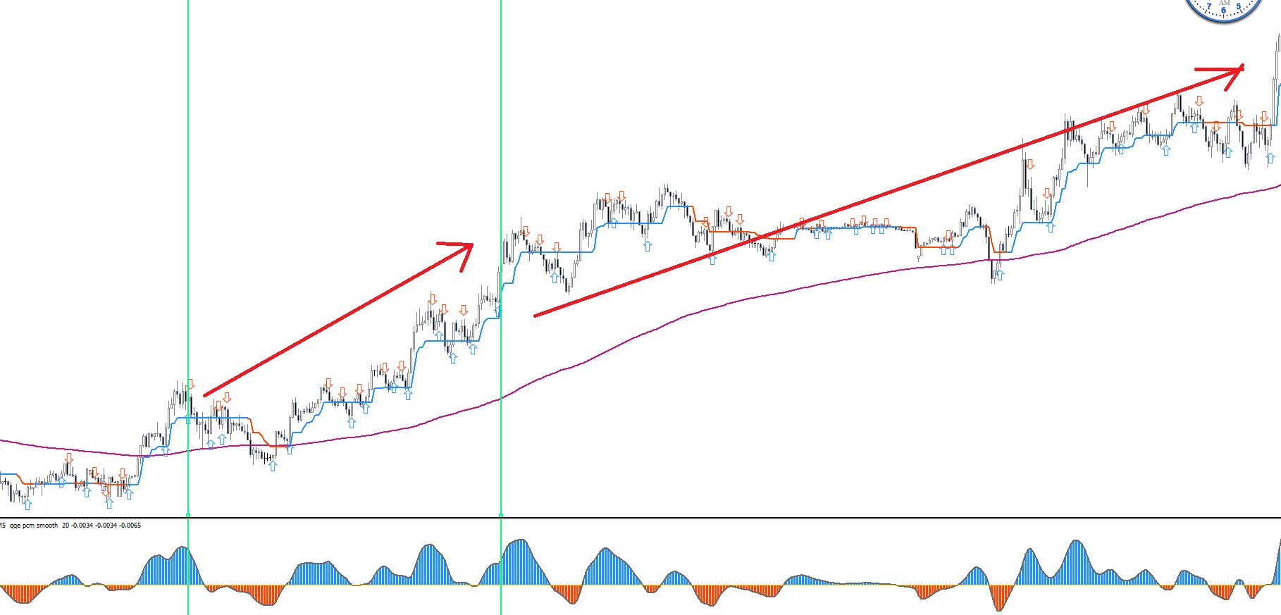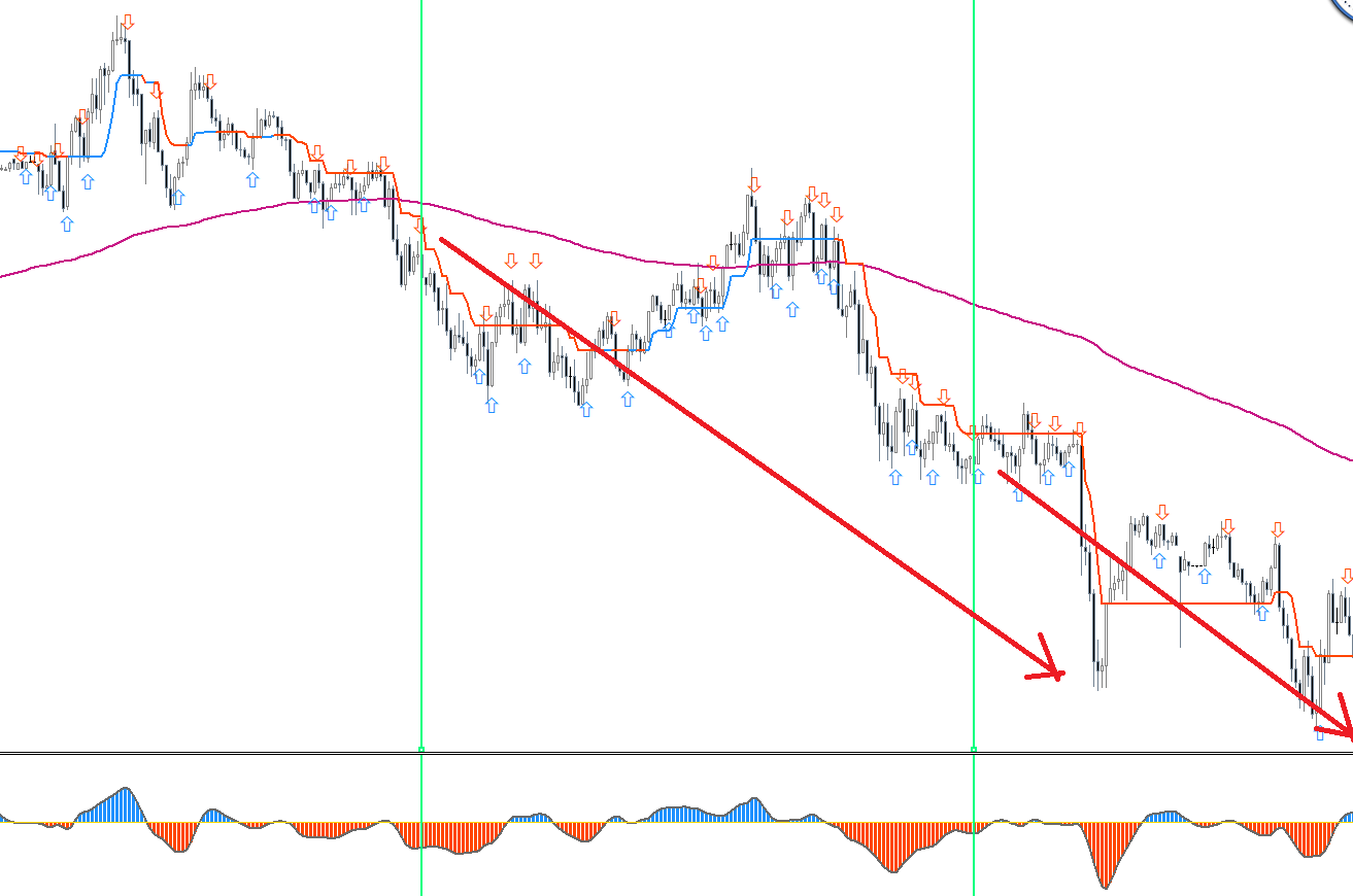 通常は上下交互にシグナルが出る設計ですが、相場の動きにより順方向と逆のシグナルが消えることにより順方向のシグナルが2連続で出るようになります。
