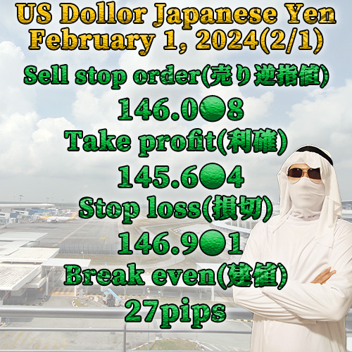 19年間無敗・勝率77%・平均月利27%【八条流FX完全無裁量脳死トレード手法】の2024/2/1のUSDJPY(ドル円)の先出し相場予想です。