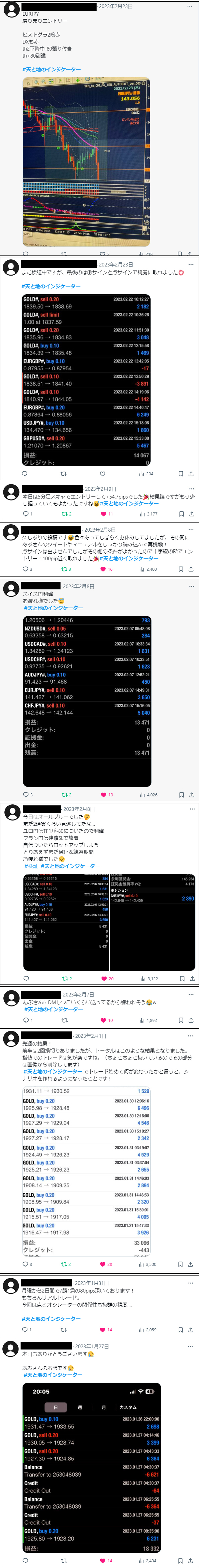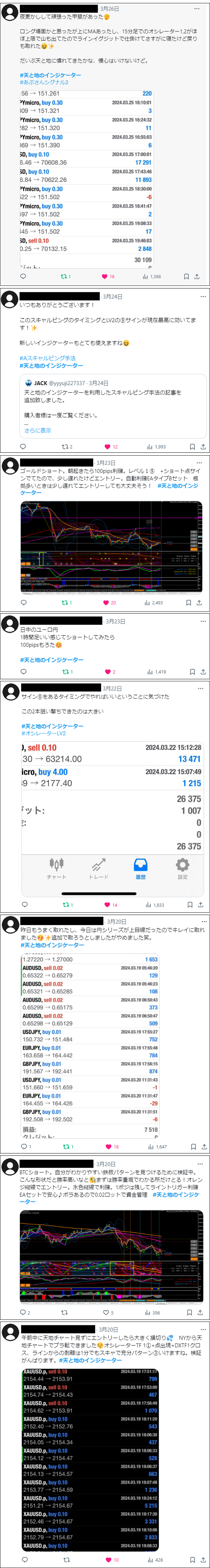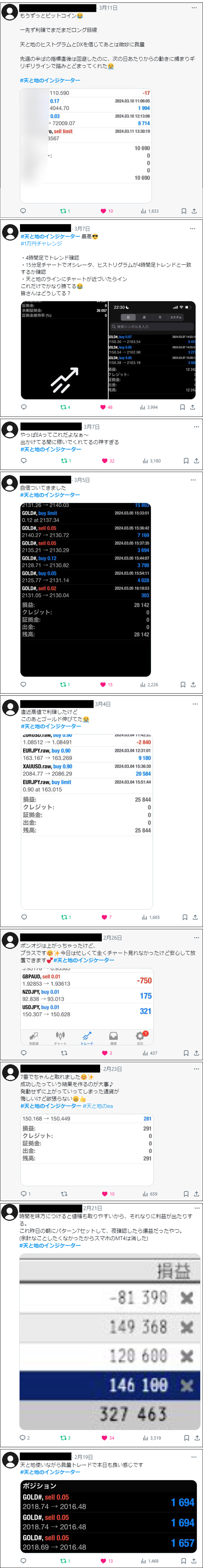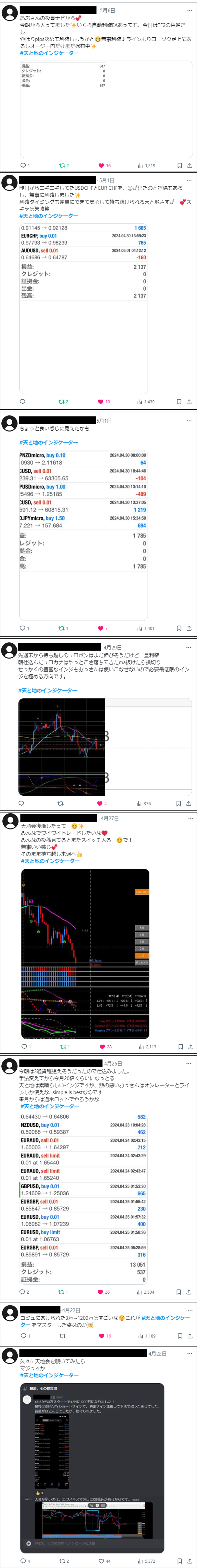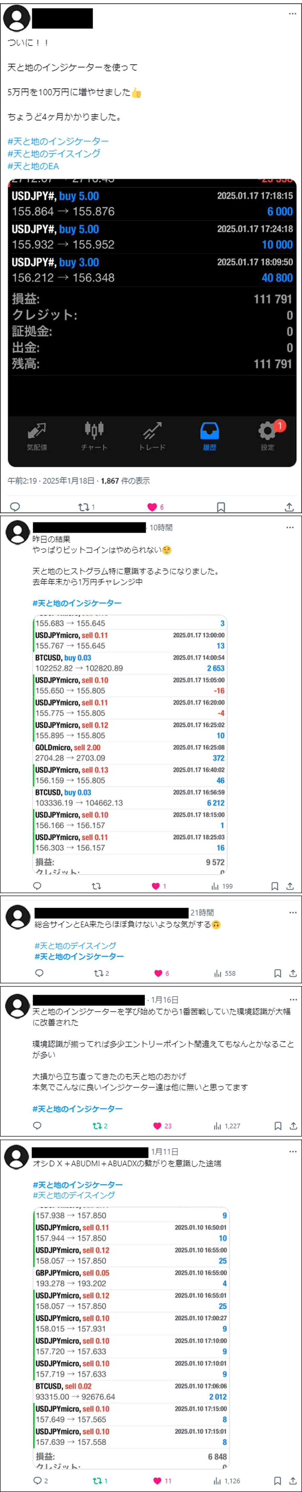 *(旧Tw*****)で「#天と地のインジケーター」と検索をかけてみた結果、ユーザー様からの沢山の貴重なポストが確認できました。その中から、勝ち報告を始め、有益な内容のポストを厳選してご紹介させていただきます。きっと皆様の参考になると思います。