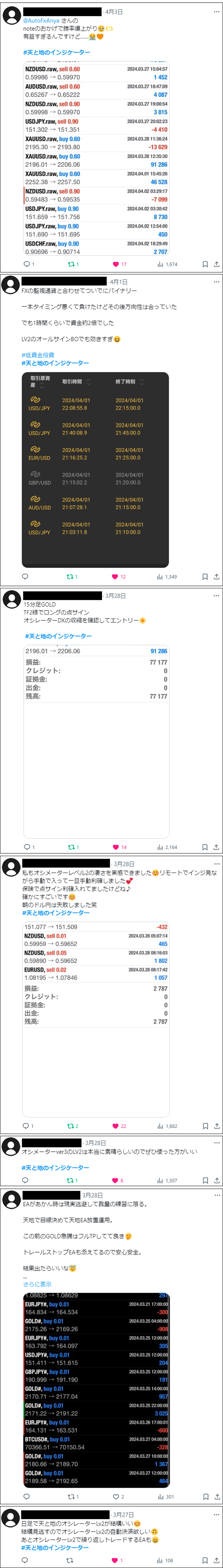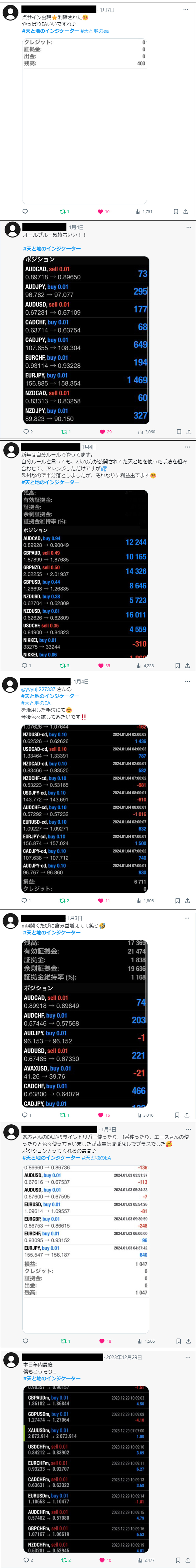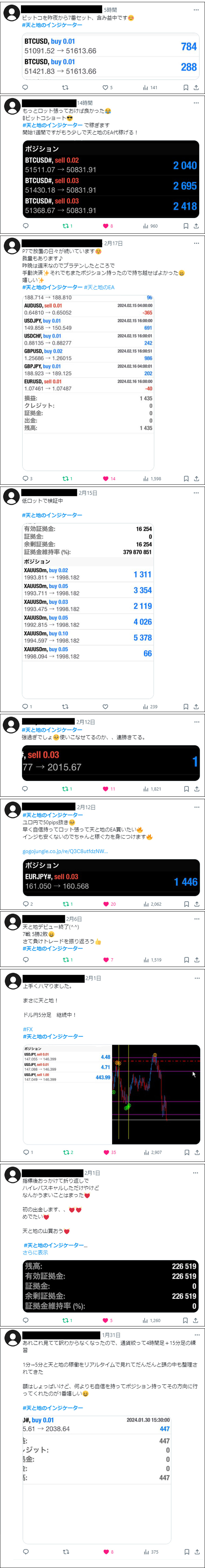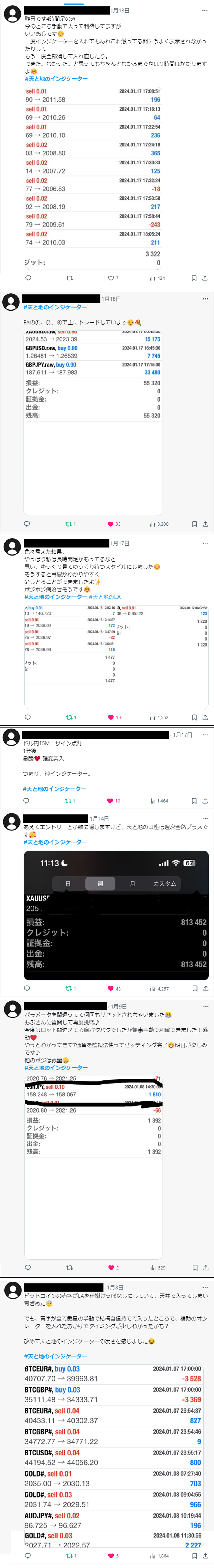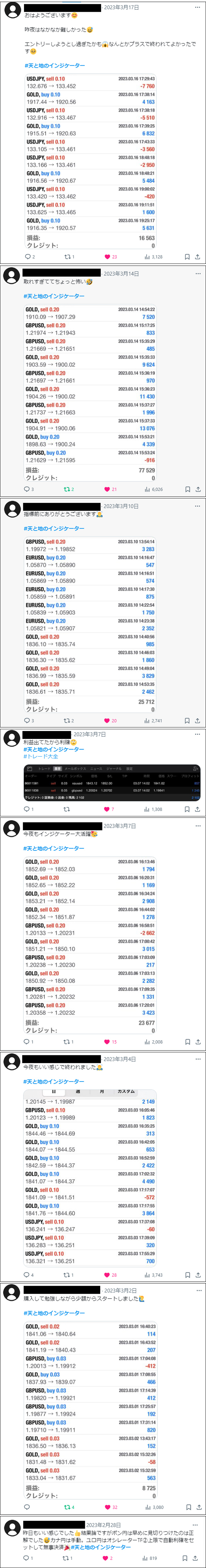 *(旧Tw*****)で「#天と地のインジケーター」と検索をかけてみた結果、ユーザー様からの沢山の貴重なポストが確認できました。その中から、勝ち報告を始め、有益な内容のポストを厳選してご紹介させていただきます。きっと皆様の参考になると思います。